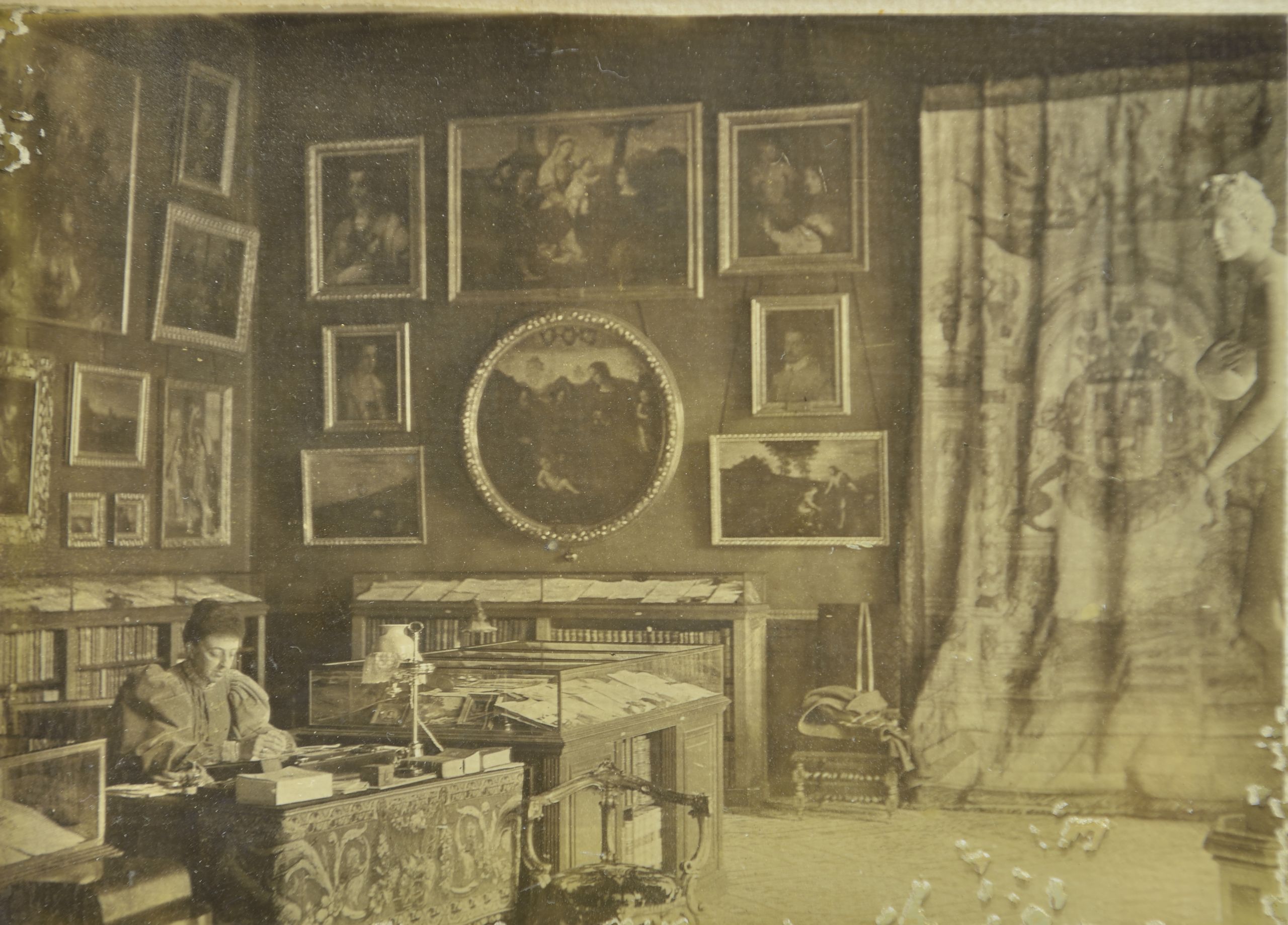Fotografía de la duquesa trabajando en la Sala de Vitrinas del palacio de Liria.