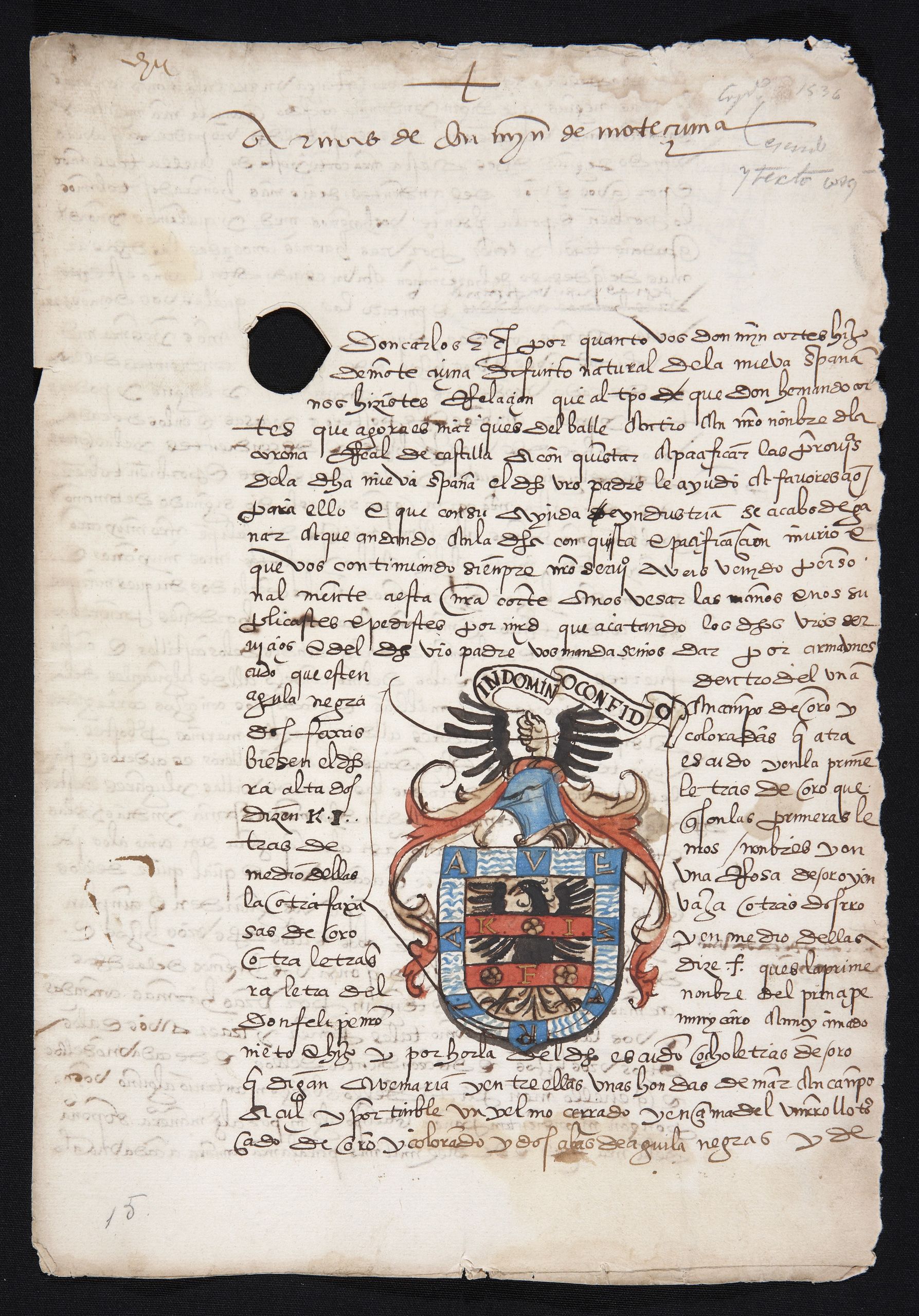 Los visitantes podrán contemplar el Nobiliario de Indias, un conjunto documental compuesto por 236 escudos de armas otorgados por los reyes Carlos V, Juana I y Felipe II a conquistadores españoles, nobles indígenas y ciudades, especialmente importantes por su valor histórico y artístico.