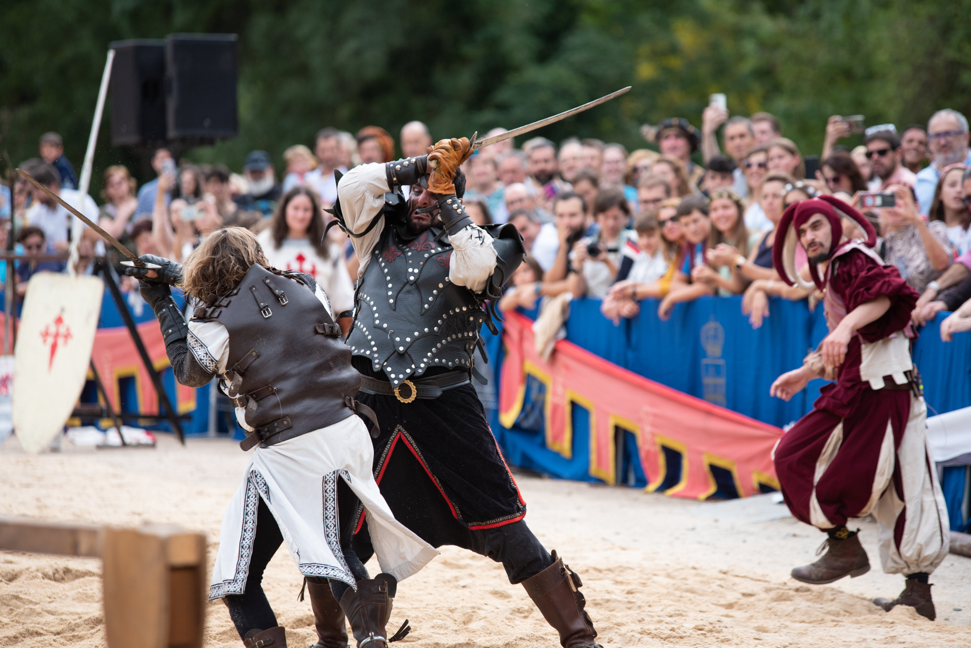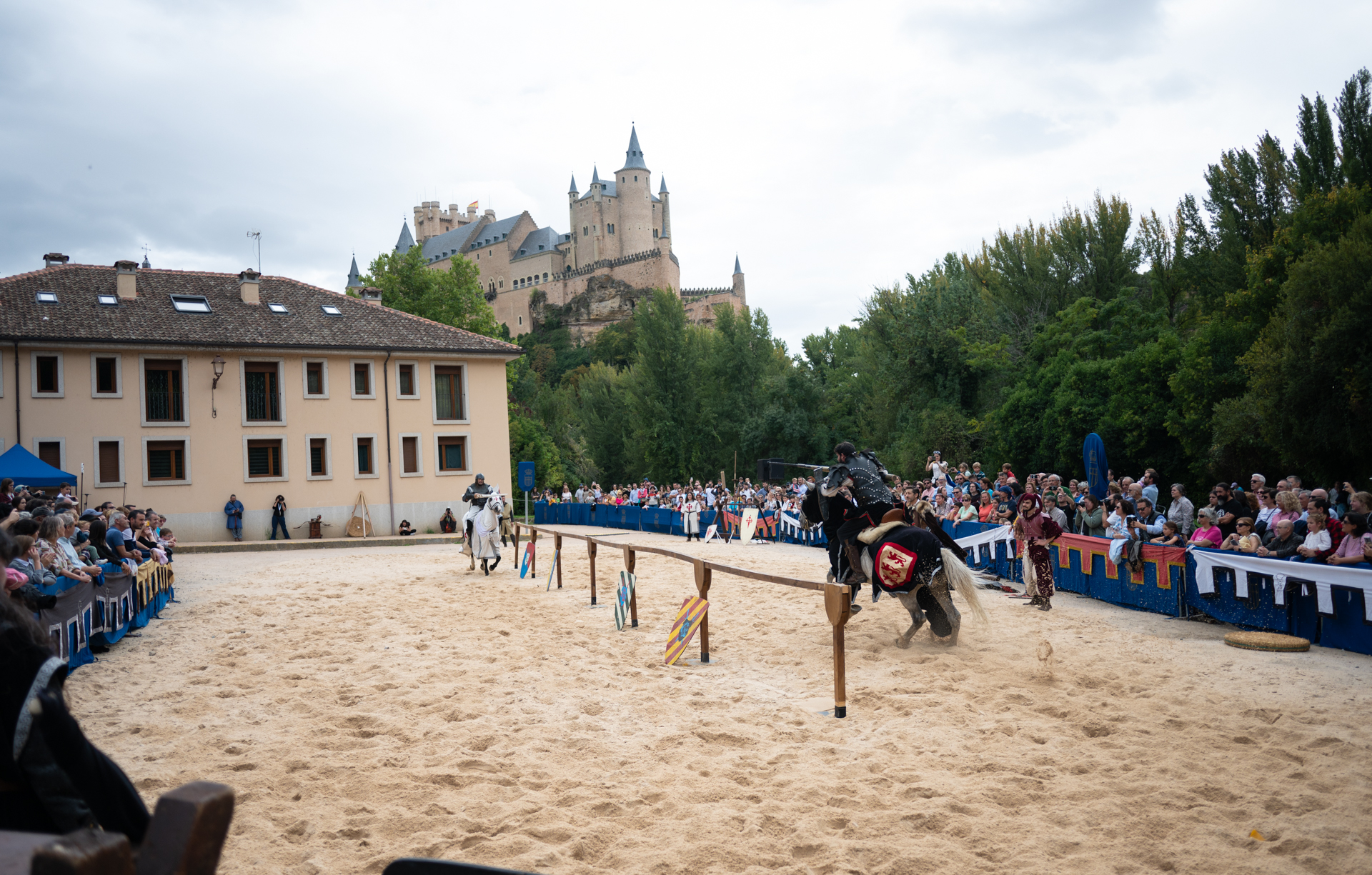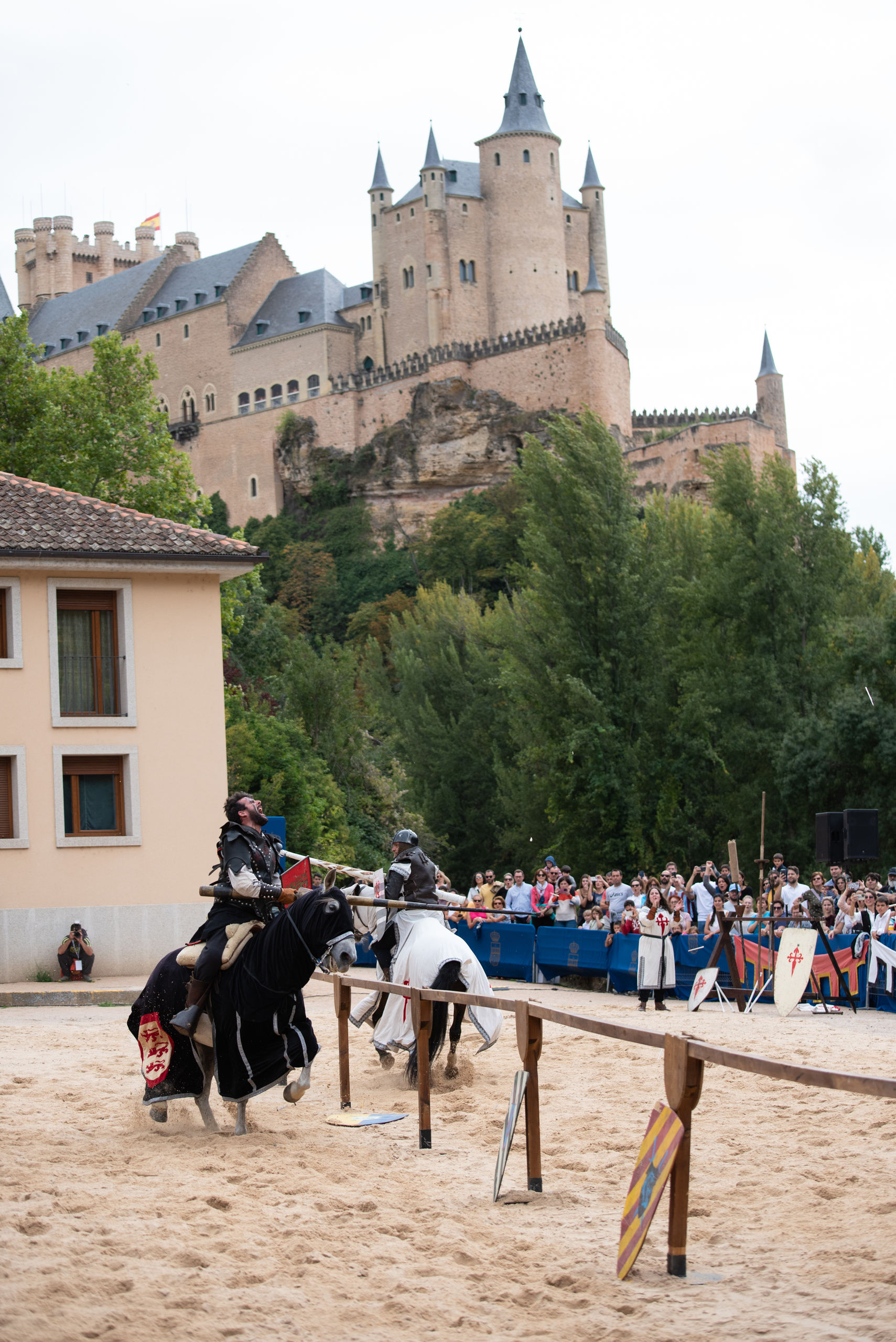 En la justa entre caballeros, se han enfrentado con lanzas, buscando golpearse en sus escudos para arrojar al contrario al suelo. Tras ello, han finalizado con un combate a espada bajo los pies del Alcázar de Segovia, un emplazamiento perfecto para esta representación histórica.