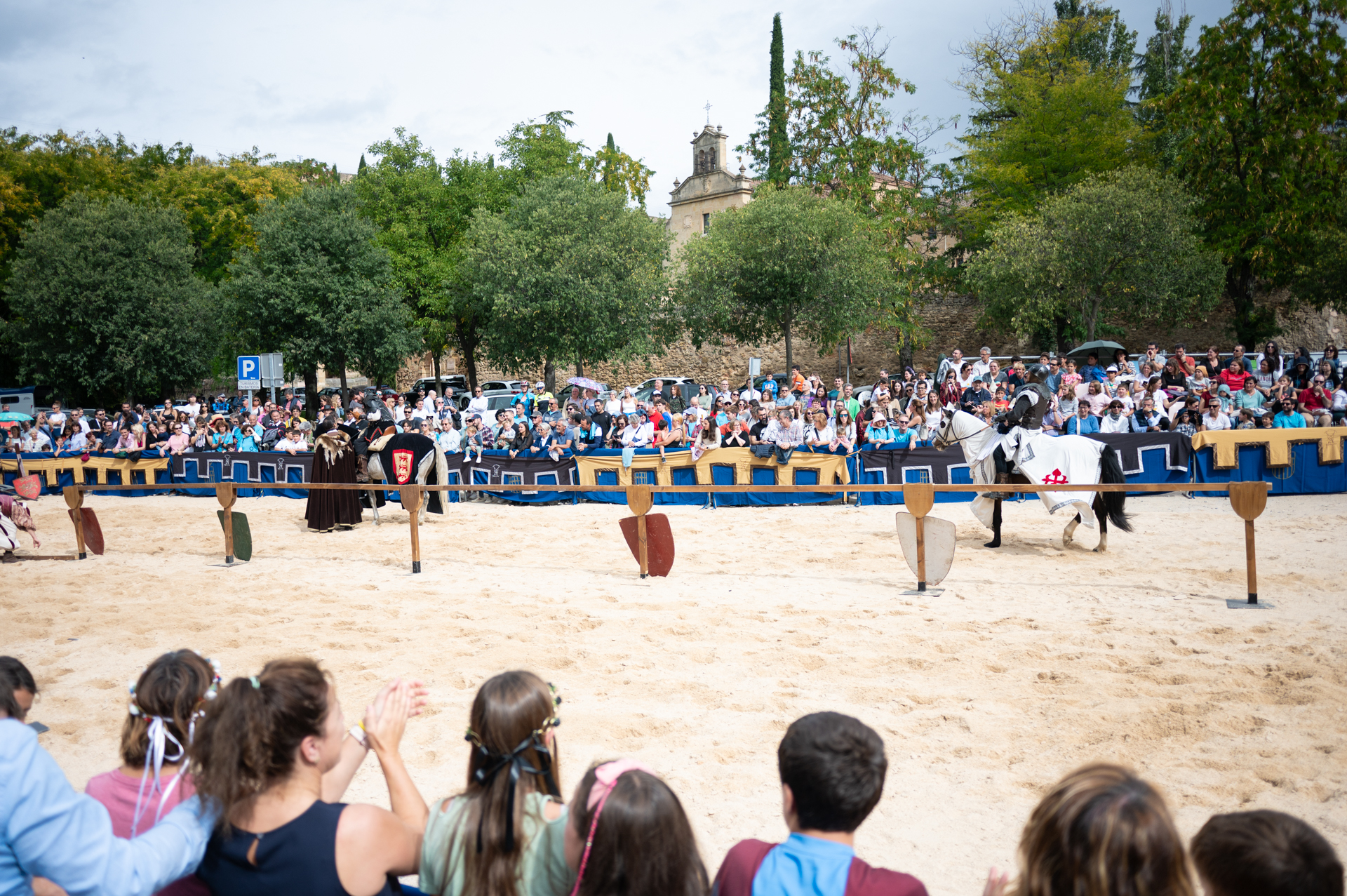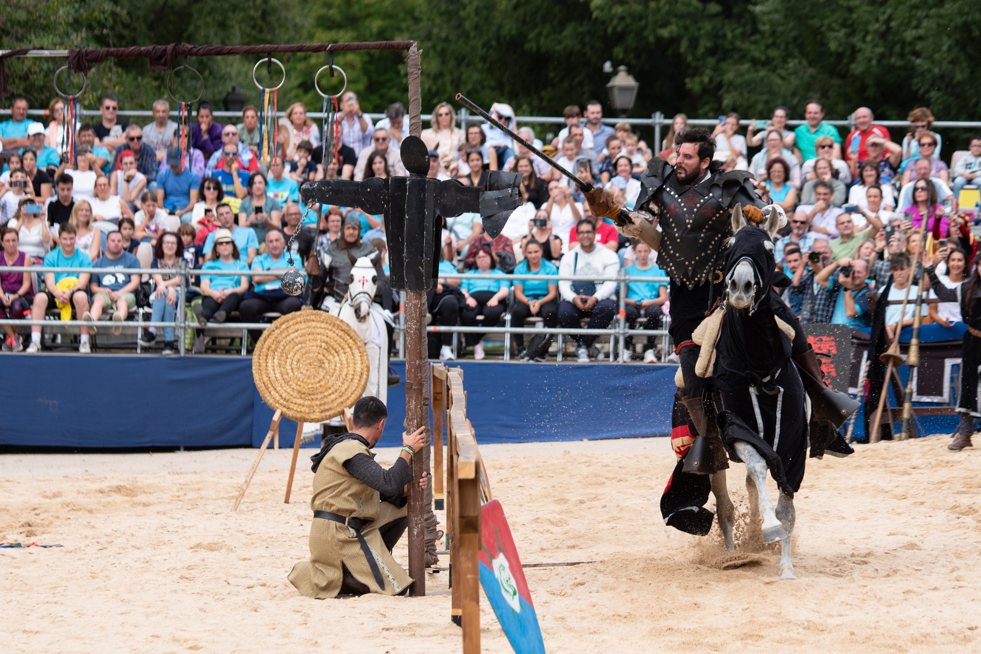 Dos caballeros, el blanco y el negro, han sido jaleados por el público, animado por un bufón que les ha hecho seguidores de uno u otro de los rivales. Así, los participantes se han medido en tres juegos de habilidad a caballo: el estafermo (un muñeco vertical al que deben golpear y que gira con un mandoble que golpea al caballero si no avanza rápido), el lanzamiento de jabalina sobre una diana y las anillas.