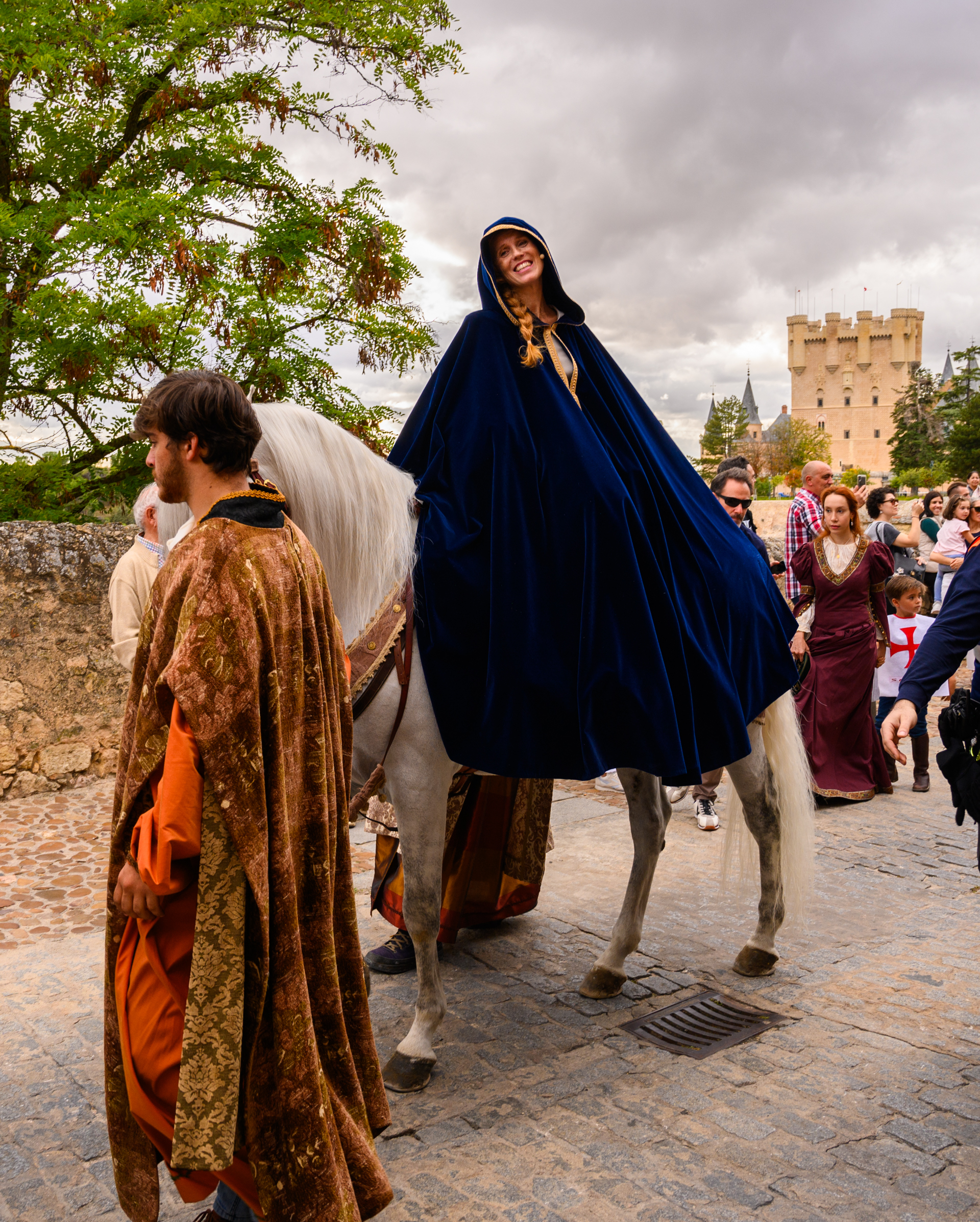 La actriz María Castro ha encarnado el papel de Isabel de Trastámara en la recreación del acto de proclamación como reina de Castilla, hecho que sucedió hace 550 años y que se ha recreado ante decenas de visitantes que han aplaudido a la intérprete a su paso por las calles de Segovia.