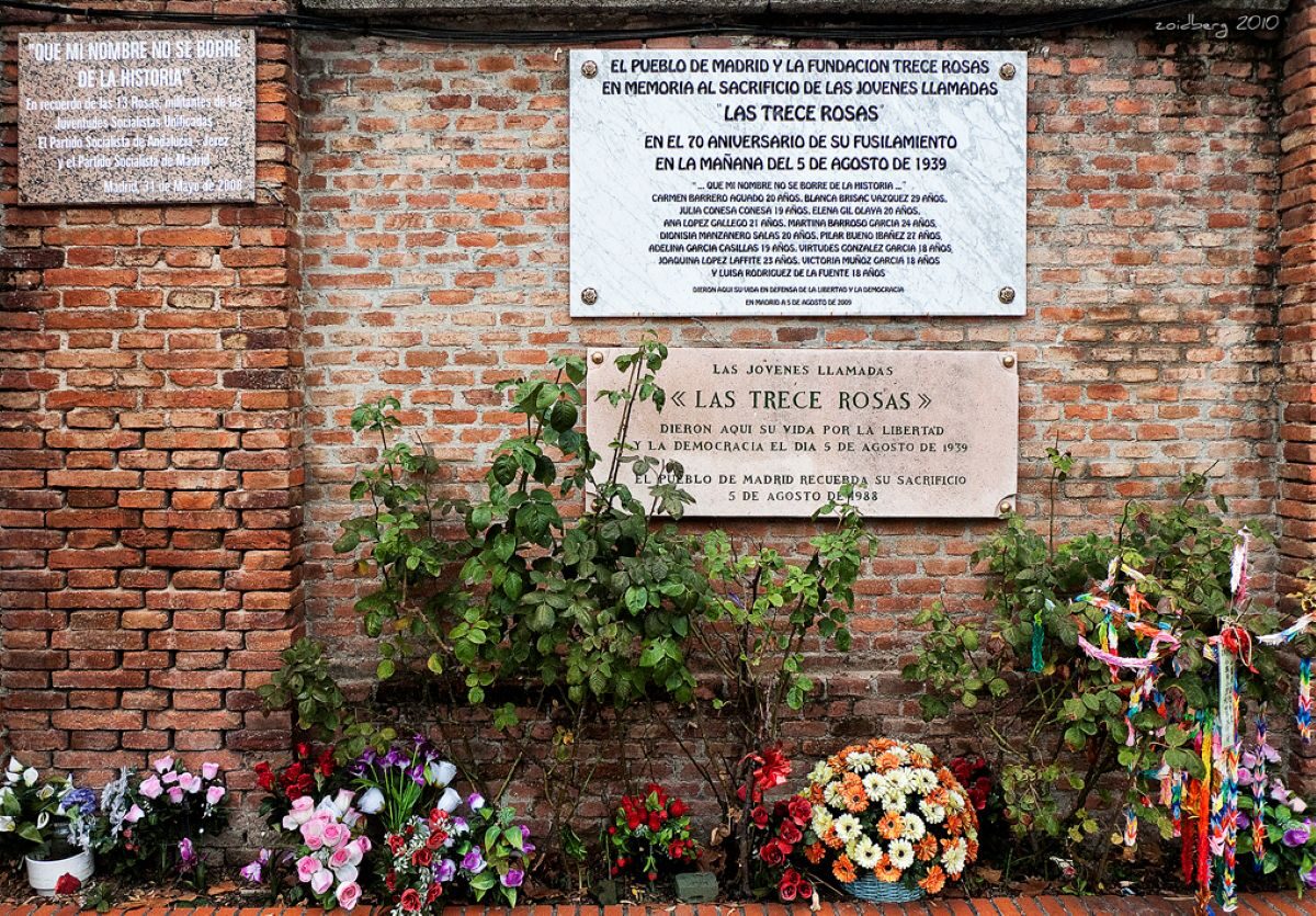 Las "Trece Rosas", que estaban vinculadas a esta organización, fueron condenadas a muerte en un juicio con tribunal, mucho más de lo que tuvieron las víctimas de Paracuellos, Aravaca, de la Casa de Campo, José Calvo Sotelo o las de las tapias de los cementerios.