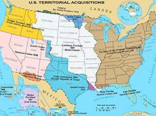 Estados Unidos ha sido una excepción. Salvo la guerra de independencia de 1776-1783, la guerra contra la República de México de 1846-1848 (en la que ganó Texas, Arizona, Nuevo México, Nevada, California y otros territorios) y la guerra contra España de 1898 (desde la cual tiene soberanía sobre Puerto Rico y Guam), el resto de su expansión ha sido fruto de negociaciones y compras.
