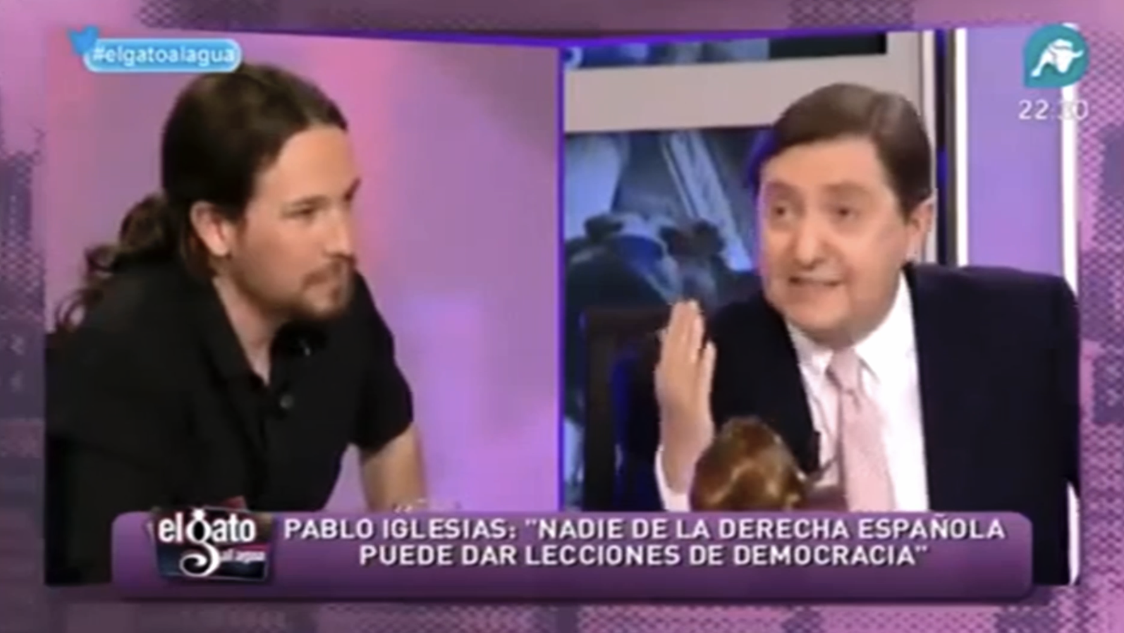 Era el año 2014, gobernaba España el PP de Mariano Rajoy, y Federico Jiménez Losantos iba como invitado al programa El Gato al Agua de Intereconomía a debatir con el entonces profesor de la Universidad Complutense Pablo Iglesias. Iglesias se había arrogado el movimiento 15M.