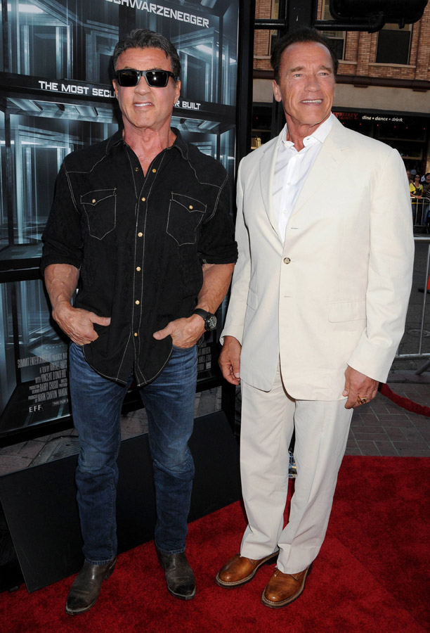 Sylvester Stallone y Schwarzenegger posaron juntos para presentar La Tumba, cinta de acción que les reúne a ambos en el reparto y en la que interpretan a dos presos que se fugan de una cárcel de máxima seguridad. Se estrena en enero.