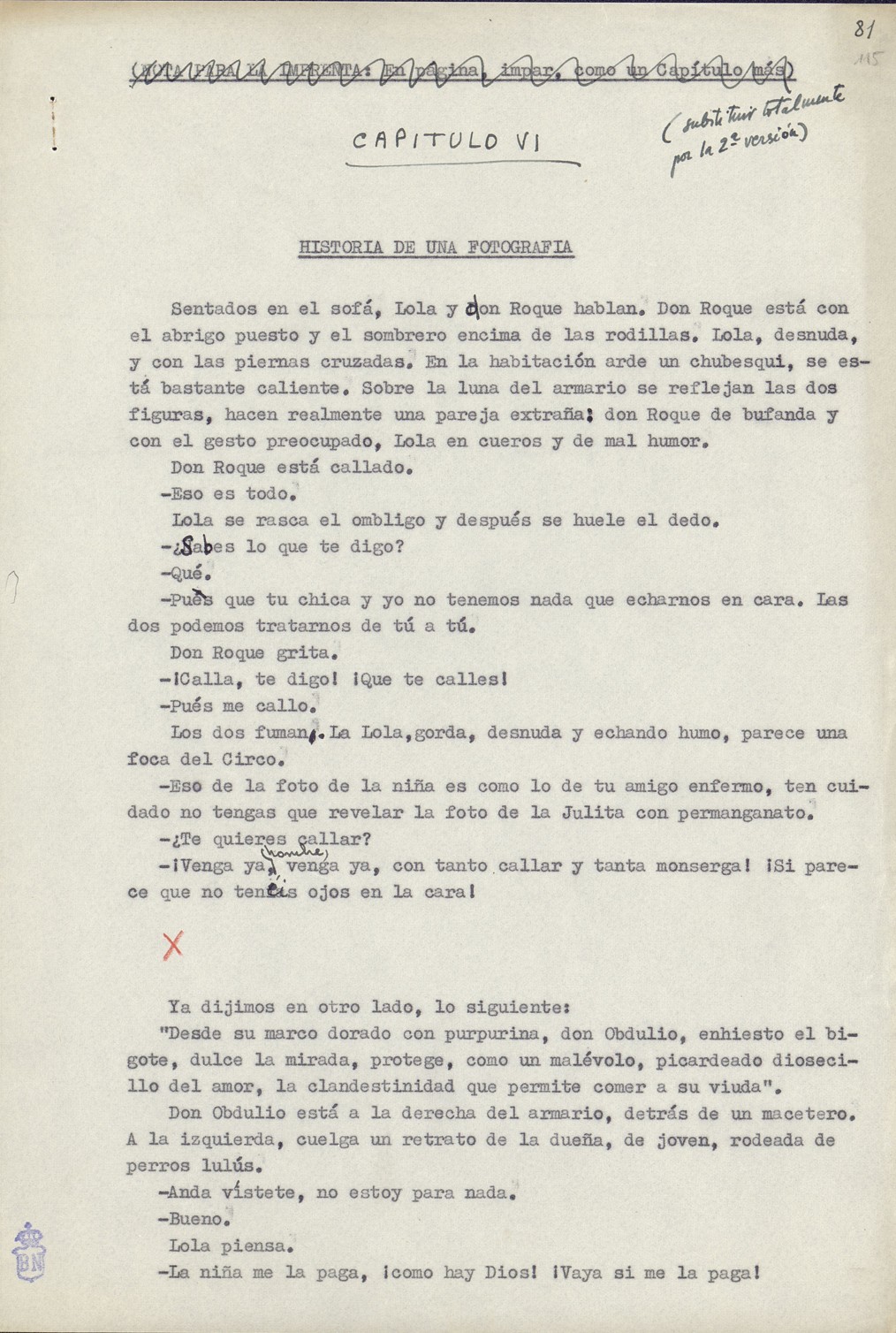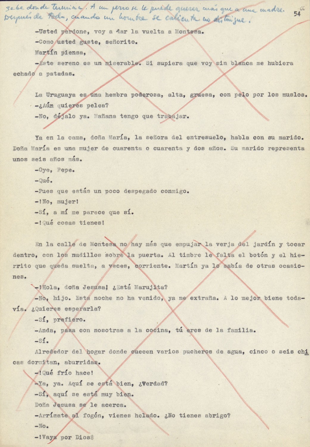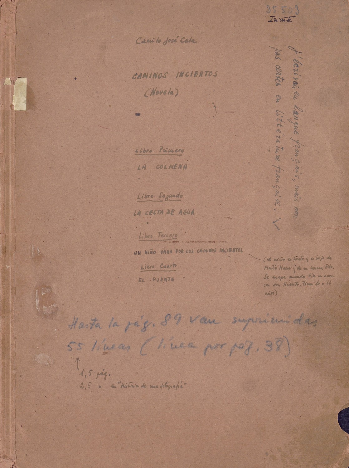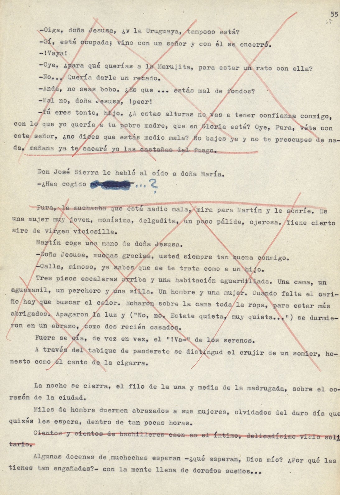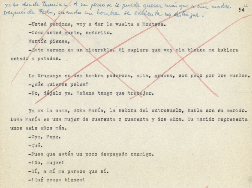 El manuscrito de "La colmena", obra cumbre de Camilo José Cela, que Annie Salomon, hija del hispanista francés Noël Salomon, ha donado a la Biblioteca Nacional, contiene pasajes censurados y otros que el premio nobel español ni siquiera presentó a la censura, dado su alto contenido erótico. Fotografías cedidas por la Biblioteca Nacional de España.