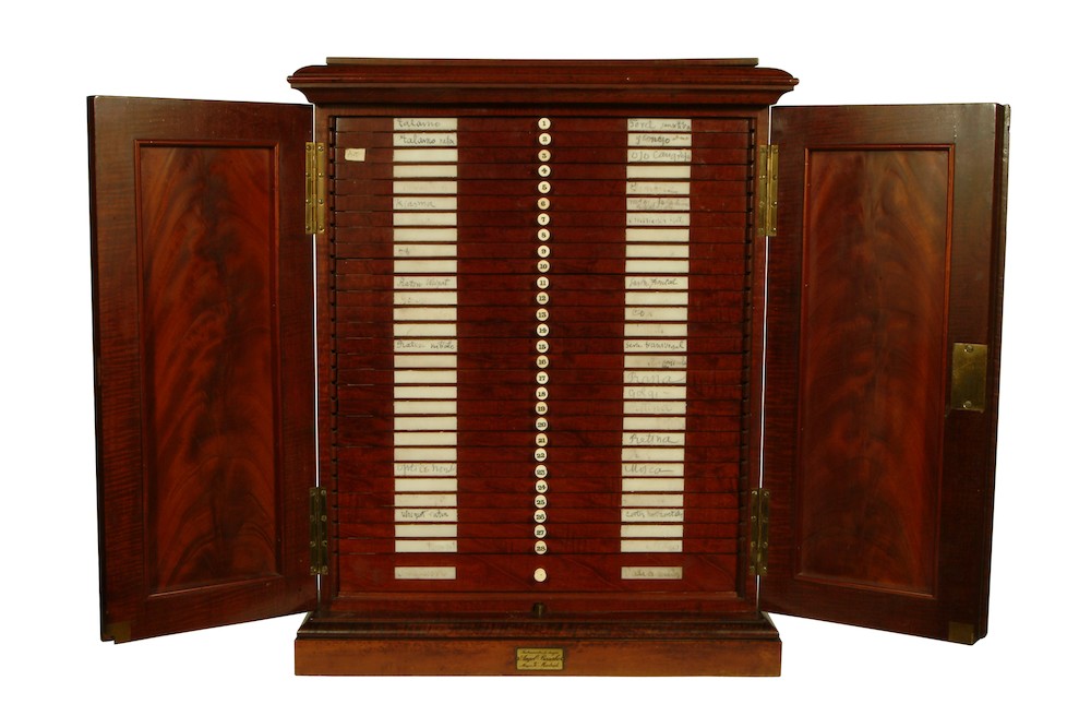 Armario para preparaciones microscópicas de Santiago Ramón y Cajal con varios de sus preparados histológicos.