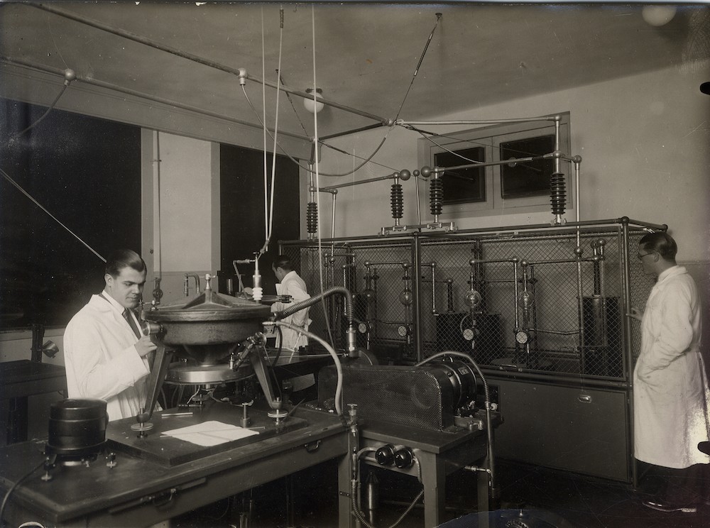 Laboratorio de rayos X en el Instituto Nacional de Física y Química hacia 1935. Ministerio de Educación, Cultura y Deporte (MECD), Archivo General de la Administración (AGA), Fondo "Medios de Comunicación Social del Estado".