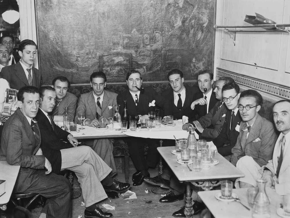 Alfonso, Tertulia del Café del Pombo. Ramón Gómez de la Serna, presidiendo la tertulia de la botillería de Pombo, 1932.