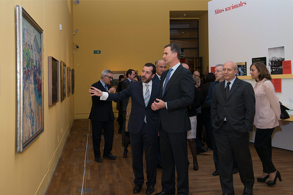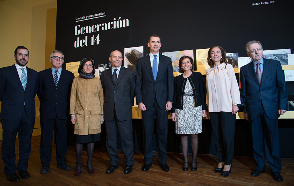 El príncipe de Asturias y el ministro Wert acompañado por las autoridades asistentes al acto y los comisarios de la exposición antes de entrar a ver la exposición 'Generación del 14'.