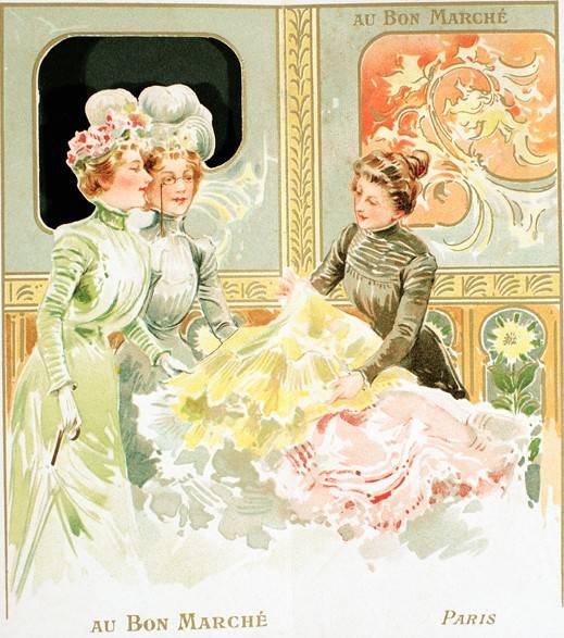 El consumo masivo, anónimo y sujeto -menos que a las penurias de la bolsa- a los envites del deseo, acabaría convirtiéndose en lo que todavía hoy es: el culto sin fronteras, sin tabúes, sin reglas de los tiempos modernos. "La embriaguez religiosa de las grandes ciudades -pregonará enfebrecido Baudelaire al hilo del big-bang de la piqueta- se consagra en los grandes almacenes, en el templo de esa vertiginosa borrachera". No es raro, pues, que en "Au bonheur de dames" se perciban los ecos de la utopía de Fourier, que el vil metal, al cabo, apuntale los muros (el cristal y el acero) de un piadoso falansterio: El palacio de la armonía, ¿por qué no? "En verano, fresquito. Caldeado en invierno".