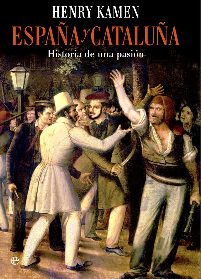 Empezamos sin abrir el libro. Por la portada, pista con clave para entender la tesis de este libro y la construcción del mito victimista del nacionalismo catalán. Le preguntamos a Kamen por la ilustración elegida y nos contesta que se trata de un cuadro del siglo XIX ("Motín en las ramblas en agosto de 1835") y que como pasa con el arte de este siglo es que "casi todo es inventado. Son ficciones para presentar un argumento al sueldo de los que gobernaban en aquel momento"; y añade "seguro que decora alguna sala pública donde presenta un argumento totalmente político y falso. No es un reflejo fiel de un acontecimiento".
