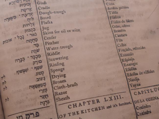 Recorremos la exposición con Uriel Macías, que además de ser el coleccionista ha sido el comisario de la muestra. Nos enseña algunas de las joyas que se pueden ver, como la primera edición completa de la Biblia en ladino con caracteres hebreos, que se imprimió en Estambul entre 1739 y 1745 y de la que es muy poco habitual disponer de los cinco tomos en los que estaba dividida.