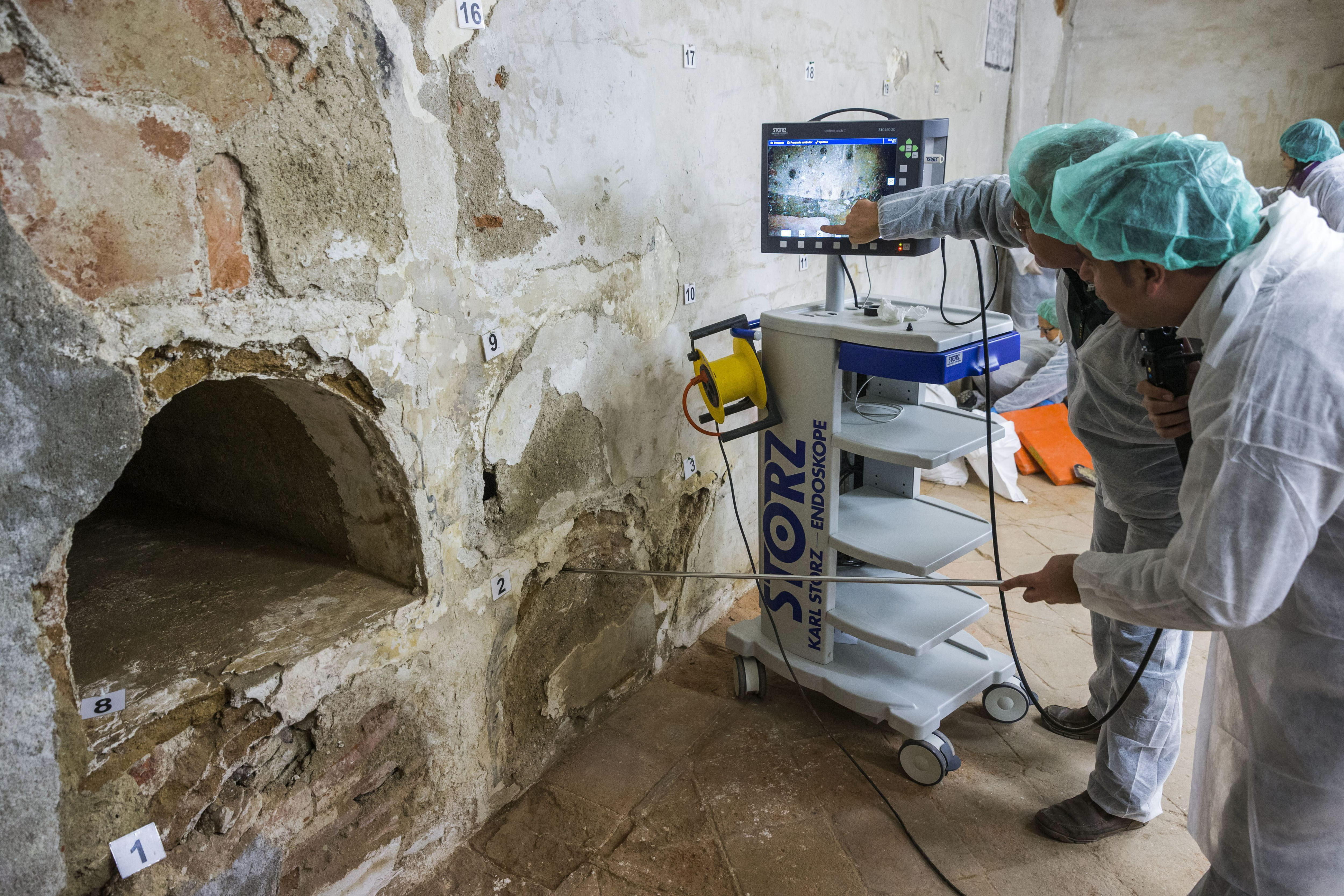 Comienza la fase forense y antropológica en la búsqueda de los restos óseos de Miguel de Cervantes en la iglesia madrileña de las Trinitarias, donde se cree que fue enterrado. Los restos se intentarán localizar entre una treintena de nichos y varias sepulturas descubiertas recientemente.