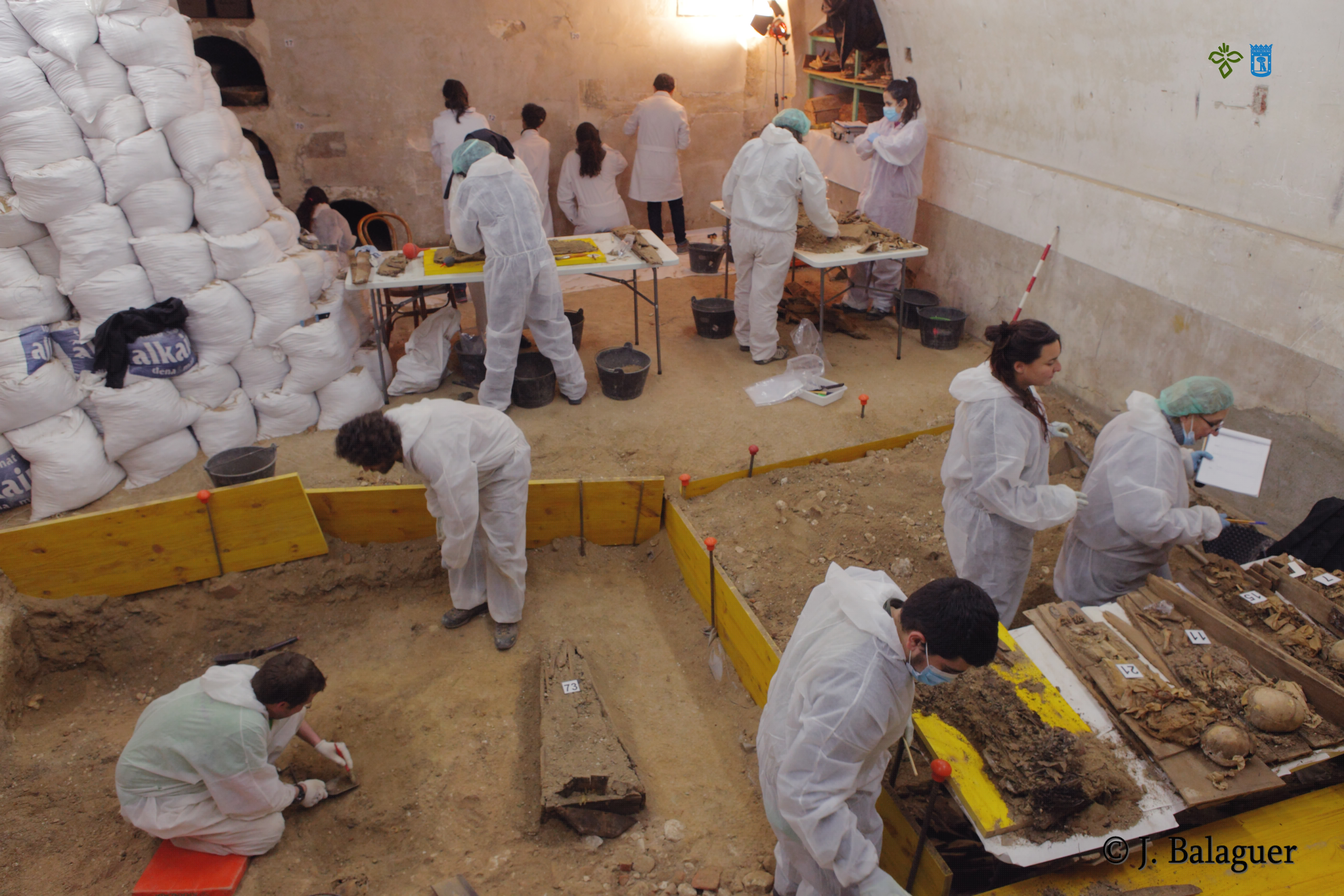 Trabajos realizados en la cripta del convento de las Trinitarias para encontrar los restos de Miguel de Cervantes.
