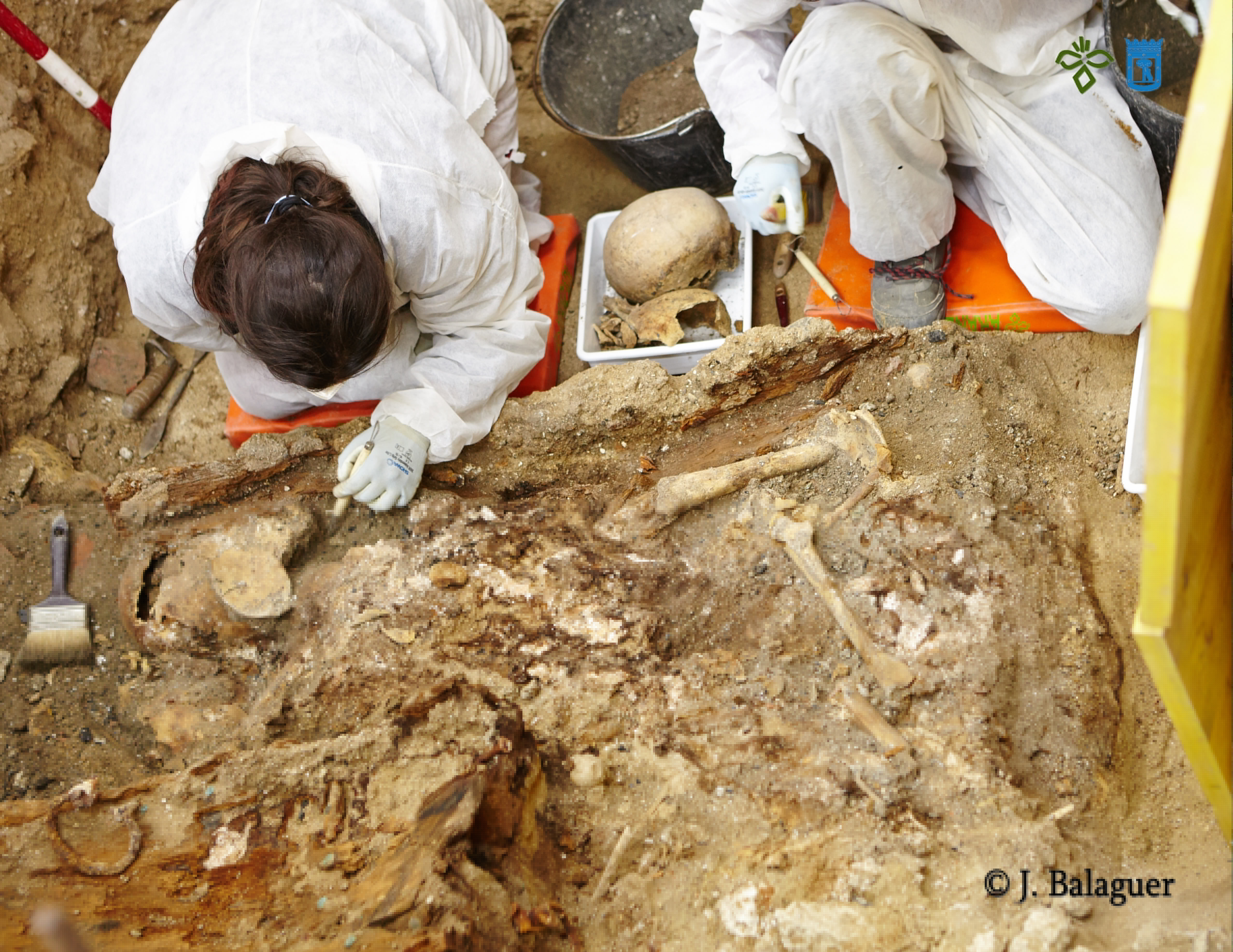 Restos óseos encontrados en la cripta de las Trinitarias, en los que se encontrarían los restos de Miguel de Cervantes.