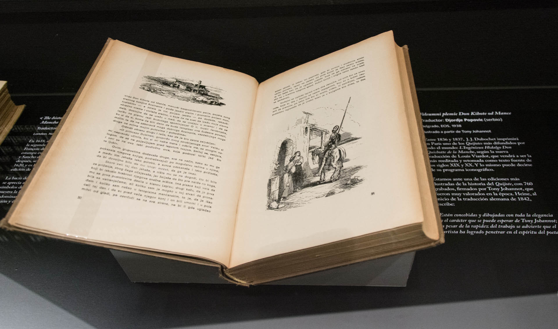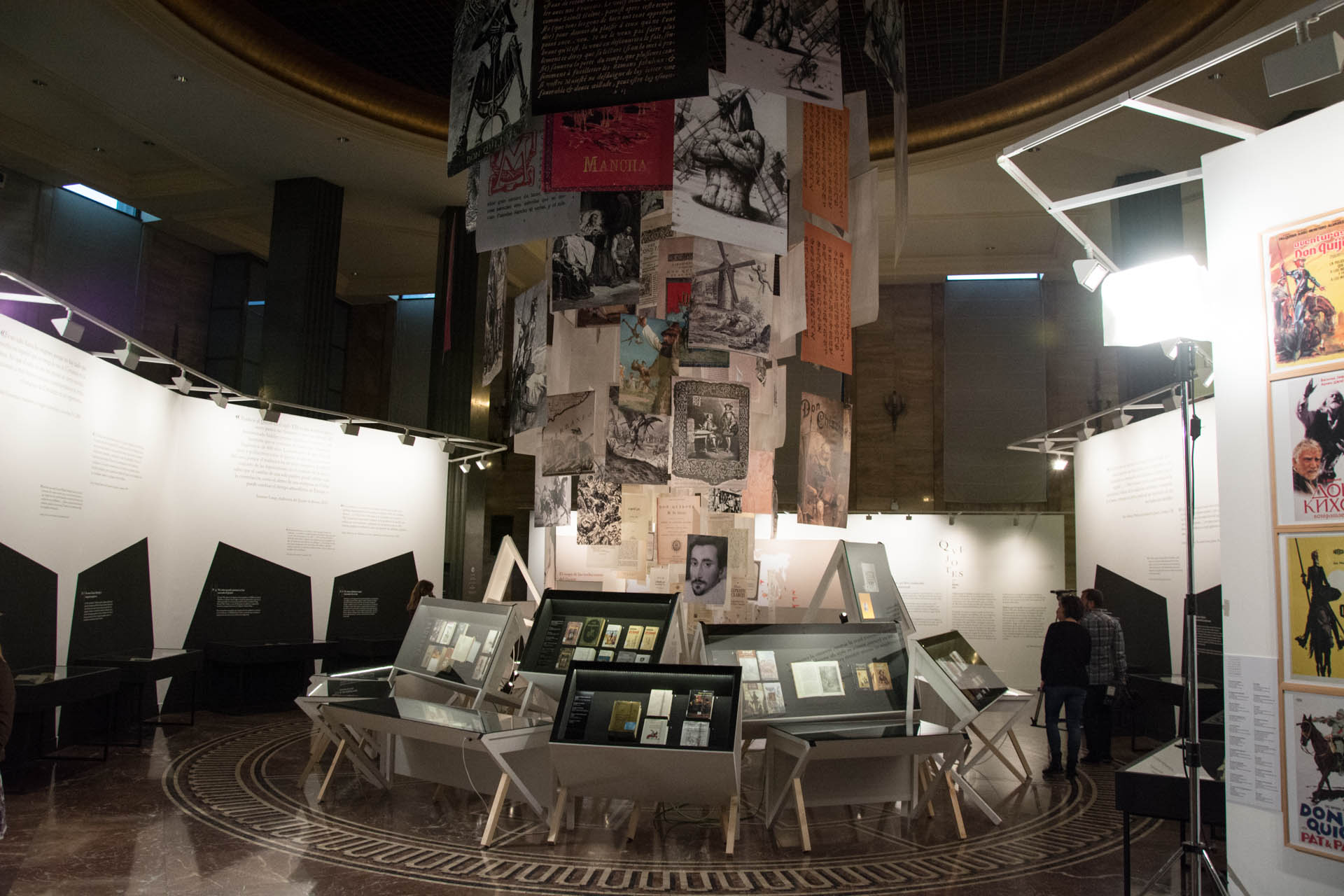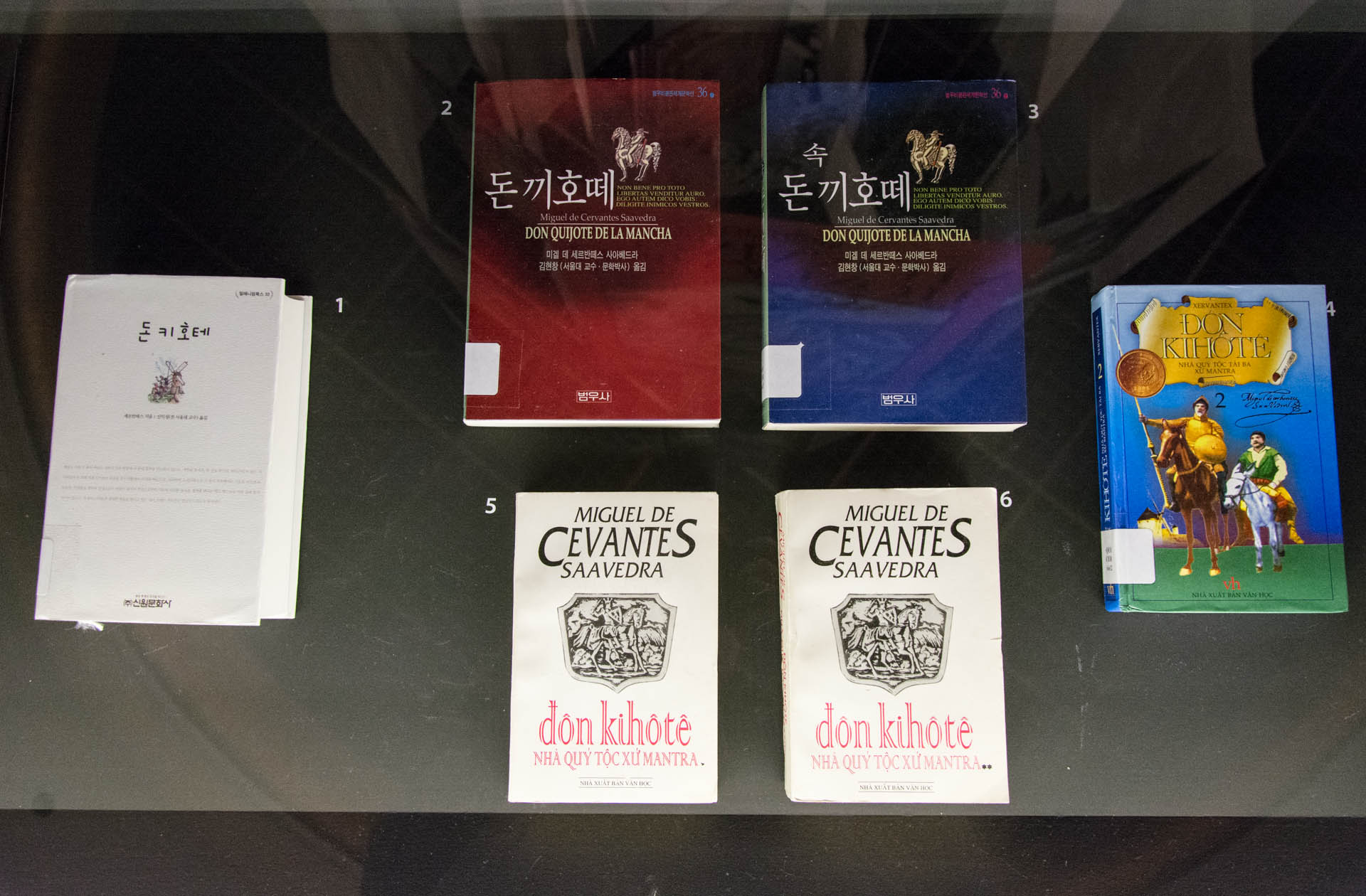 La exposición Quijotes por el mundo, que se muestra en el Instituto Cervantes de Madrid, permite unir por un lado, la riqueza bibliográfica de la red de bibliotecas del Instituto Cervantes y rendir homenaje a cientos de traductores de la obra cervantina que, a lo largo de 400 años, han hecho posible que Cervantes y sus textos se hayan difundido por todo el mundo.