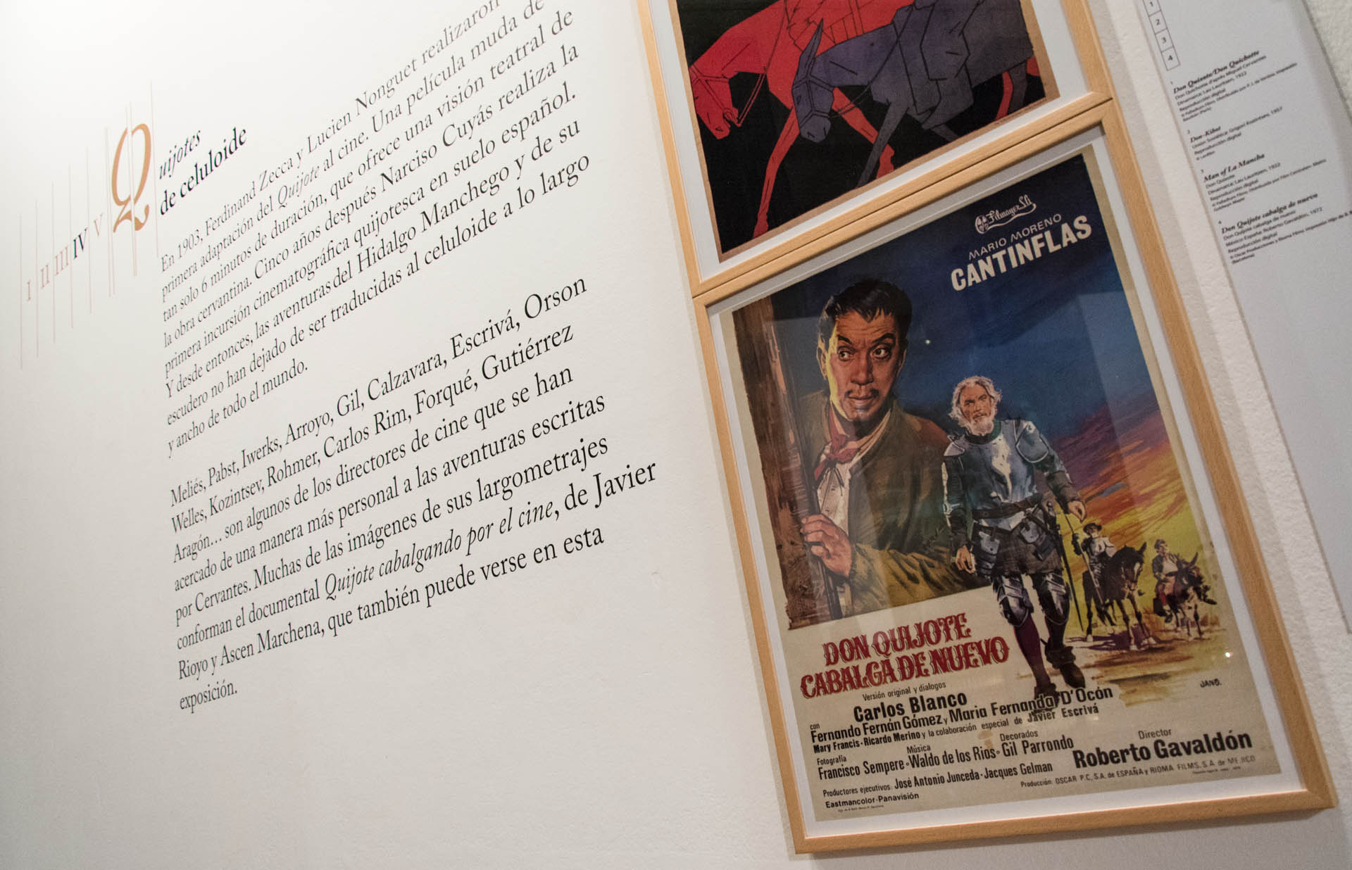 El Quijote también ha dejado huella en el celuloide. En la exposición se puede ver una recopilación de carteles de películas.
