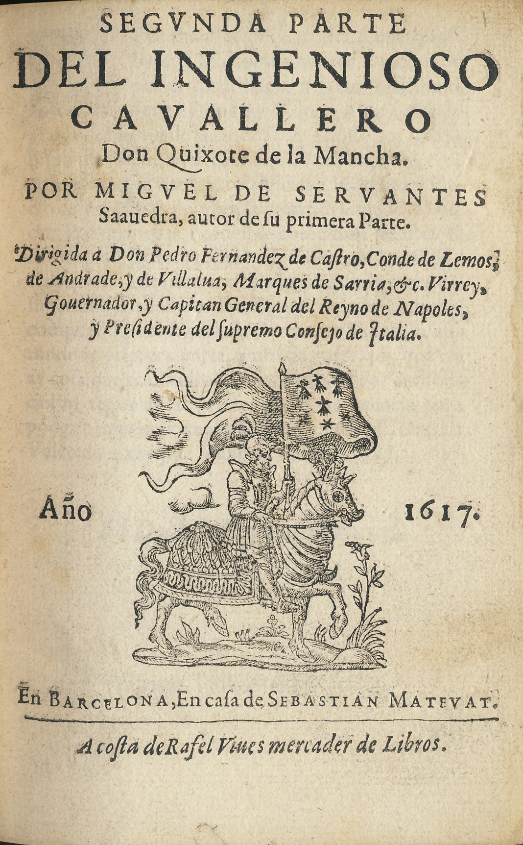 Miguel de Cervantes Saavedra (1547-1616): Segunda parte del ingenioso caballero don Quijote de la Mancha. Madrid: Juan de la Cuesta, 1615 Registro 4