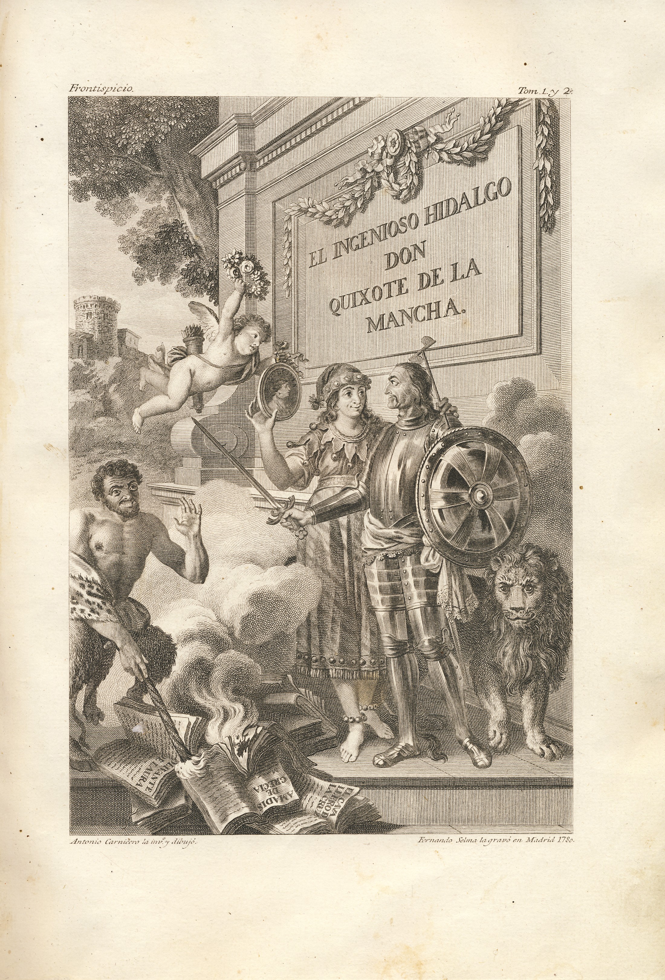 Miguel de Cervantes Saavedra (1547-1616): El ingenioso hidalgo don Quijote de la Mancha. Madrid: Joaquín Ibarra, 1780 Inventario 2147. Exlibris de Juan Manuel de la Helguera