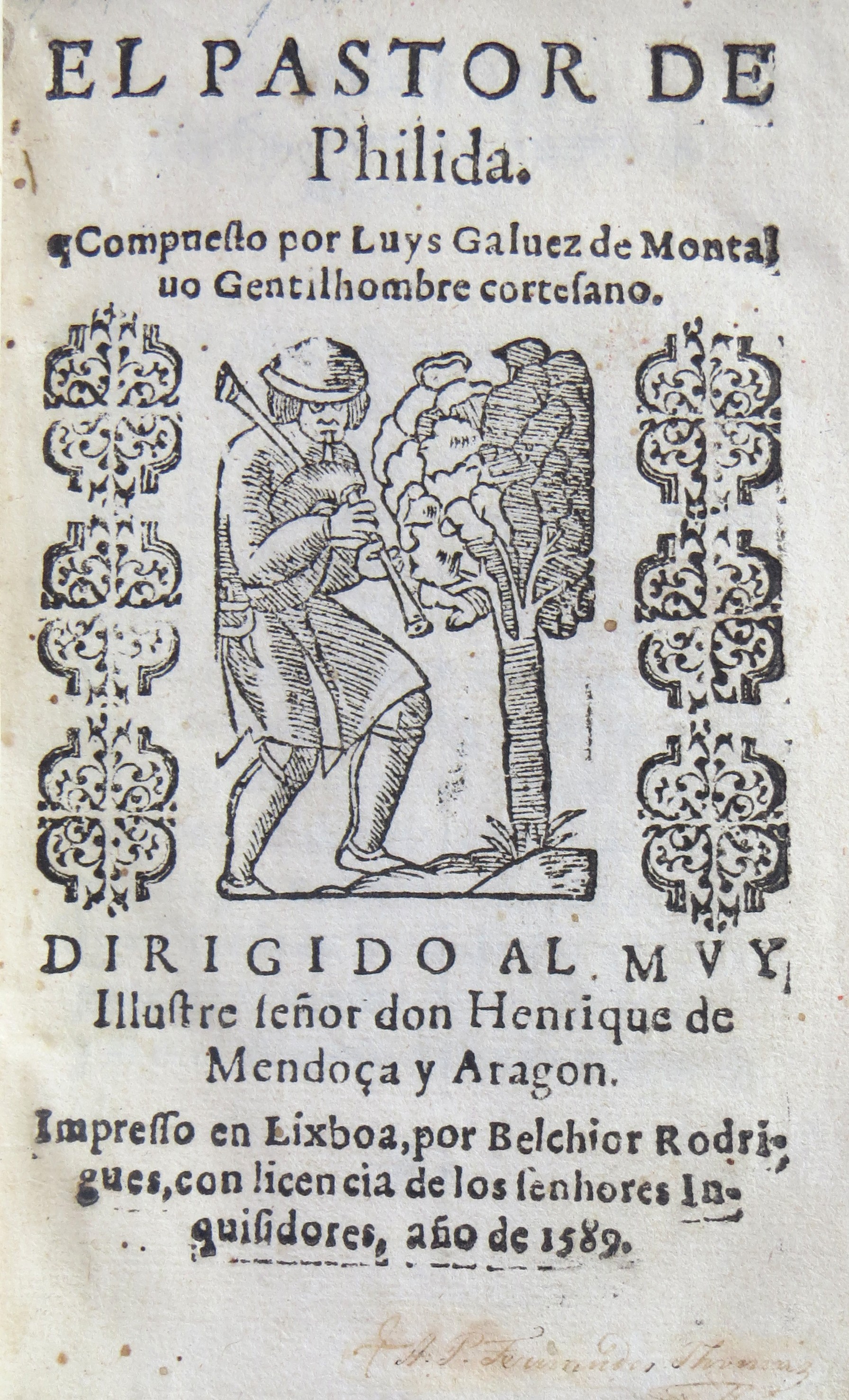 Luis Gálvez de Montalvo (1549-1591): El pastor de Philida. Lisboa: Belchior Rodrigues, 1589. Inventario 56. Exlibris de Annibal Fernandes Thomaz (1849-1911)