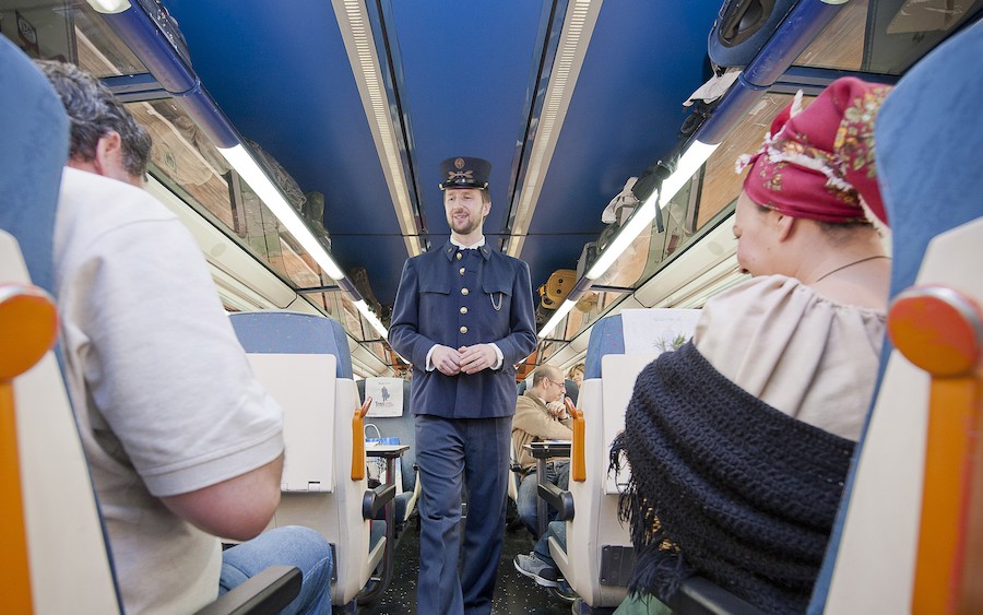El pasajero comienza su viaje con una curiosa teatralización en el tren que aúna tradiciones sorianas, leyendas y anécdotas, un trayecto en el que no faltarán los versos más famosos de Antonio Machado o la leyendas más populares y tenebrosas como El monte de las ánimas que Gustavo Adolfo Bécquer tuvo a bien situar en una de las laderas de Soria.