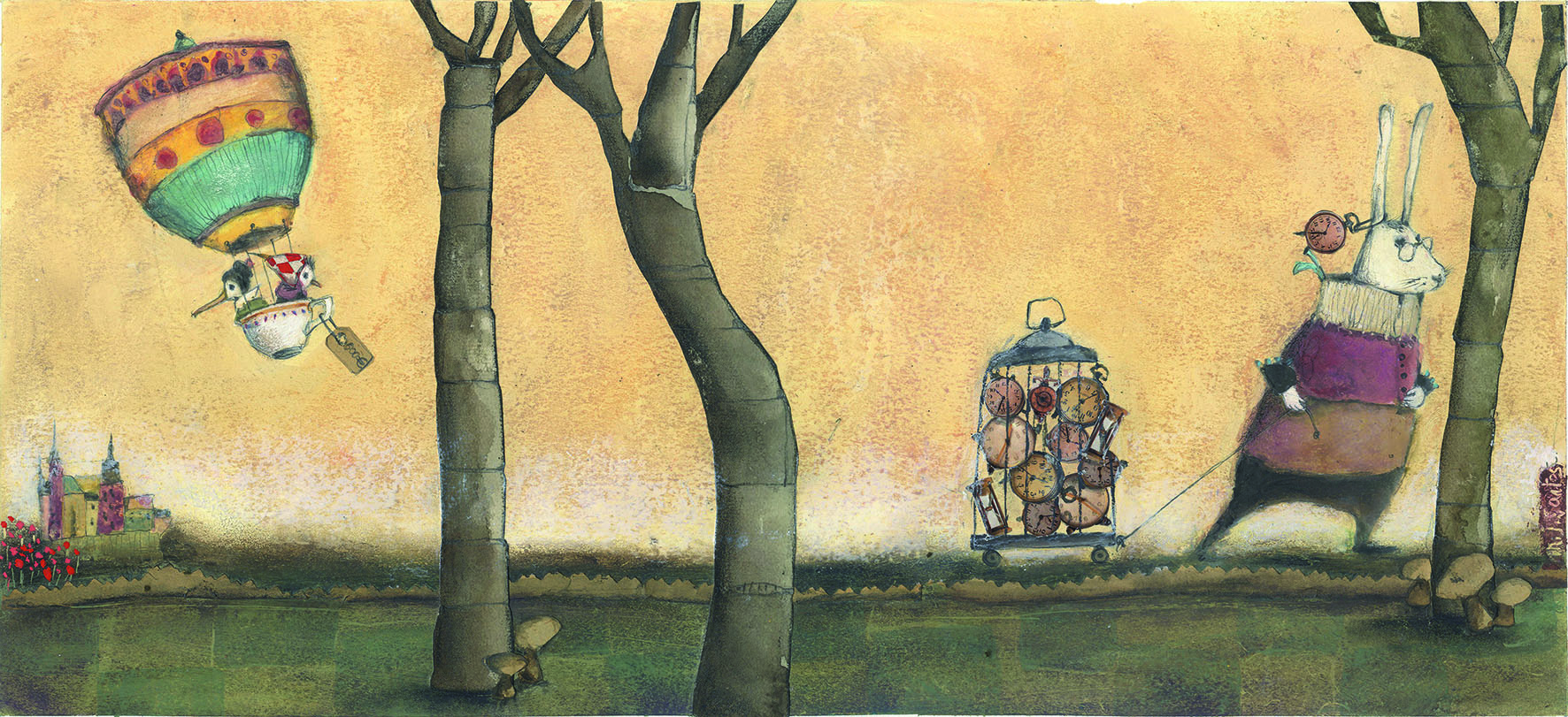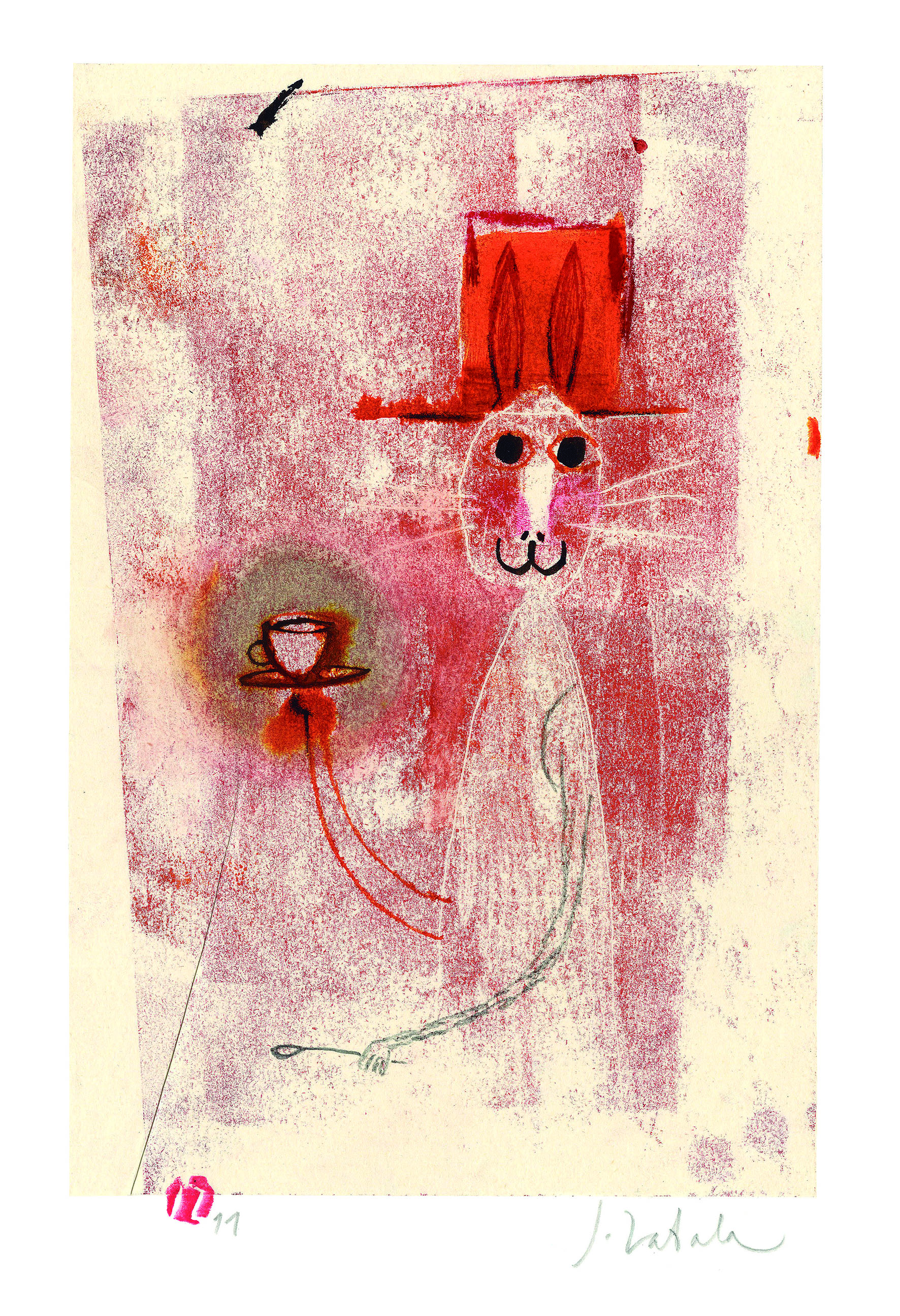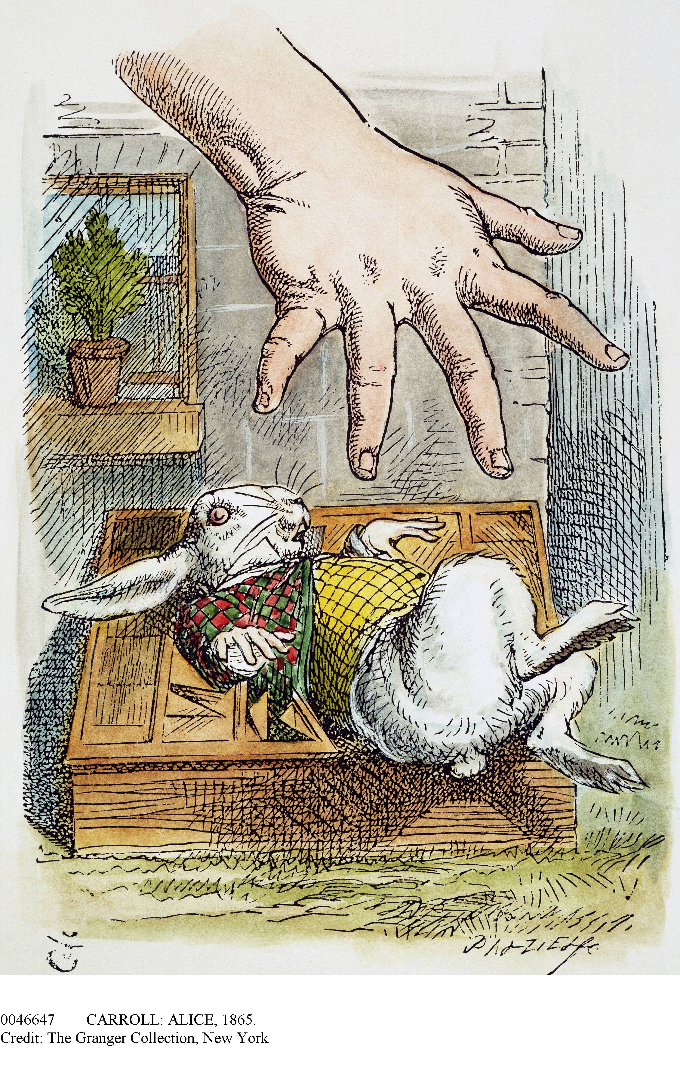 Exposición del Museo ABC Feliz no cumpleaños, 150 años en el País de las Maravillas. Hasta el 3 de abril de 2016. La muestra se divide en cuatro capítulos. Esta lámina pertenece a "¡Guise a ese conejo! Perdón: sigue a ese conejo»".