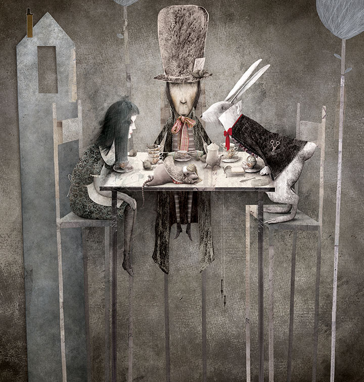 Una Alicia rodeada de sombras por Emilio Urberuaga