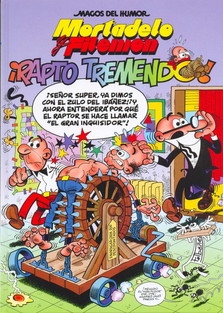 Me gusta la capacidad de Ibáñez para la autoparodia, el personaje de cómic que ha creado de sí mismo y cómo este juega a romper la cuarta pared que lo separa del lector. El autor llega incluso a protagonizar una de las aventuras de sus criaturas, Rapto tremendo, en la que es secuestrado y son Mortadelo y Filemón, quién si no, los encargados de rescatarle.