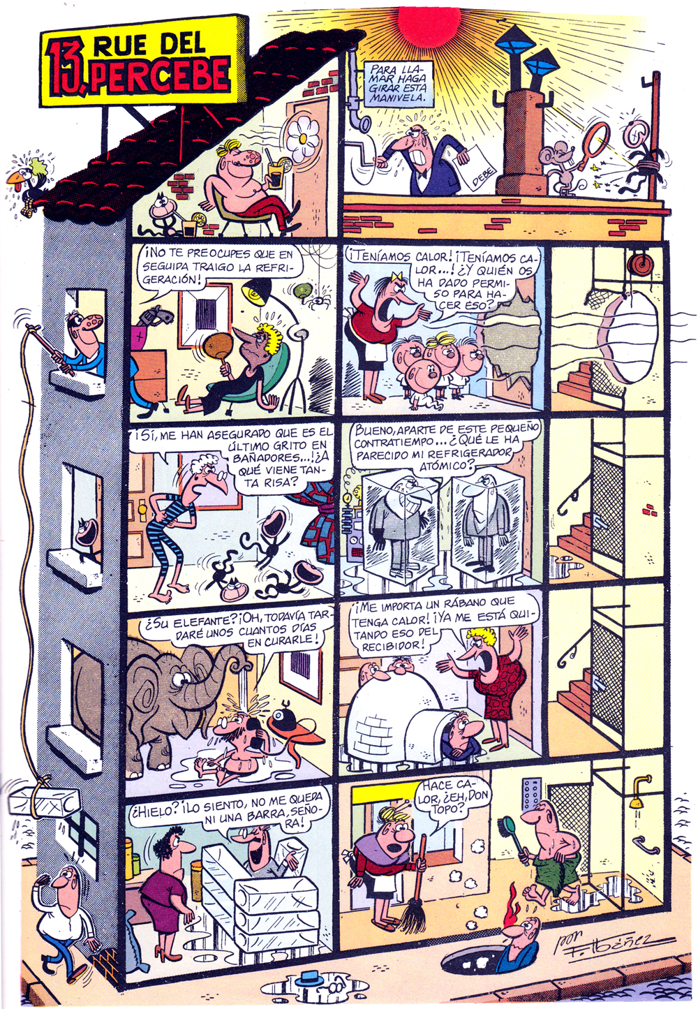 Una de las principales muestras de esa vertiente social fue 13, Rue del Percebe, que fue publicada por primera vez en marzo de 1961, en la revista Tiovivo. La creatividad de Ibáñez consiguió elevar una fórmula puntual, usada antes por creadores como Will Eisner o Vázquez, a una serie regular capaz de alternar tramas con chistes gráficos más puntuales, todo en una única página.