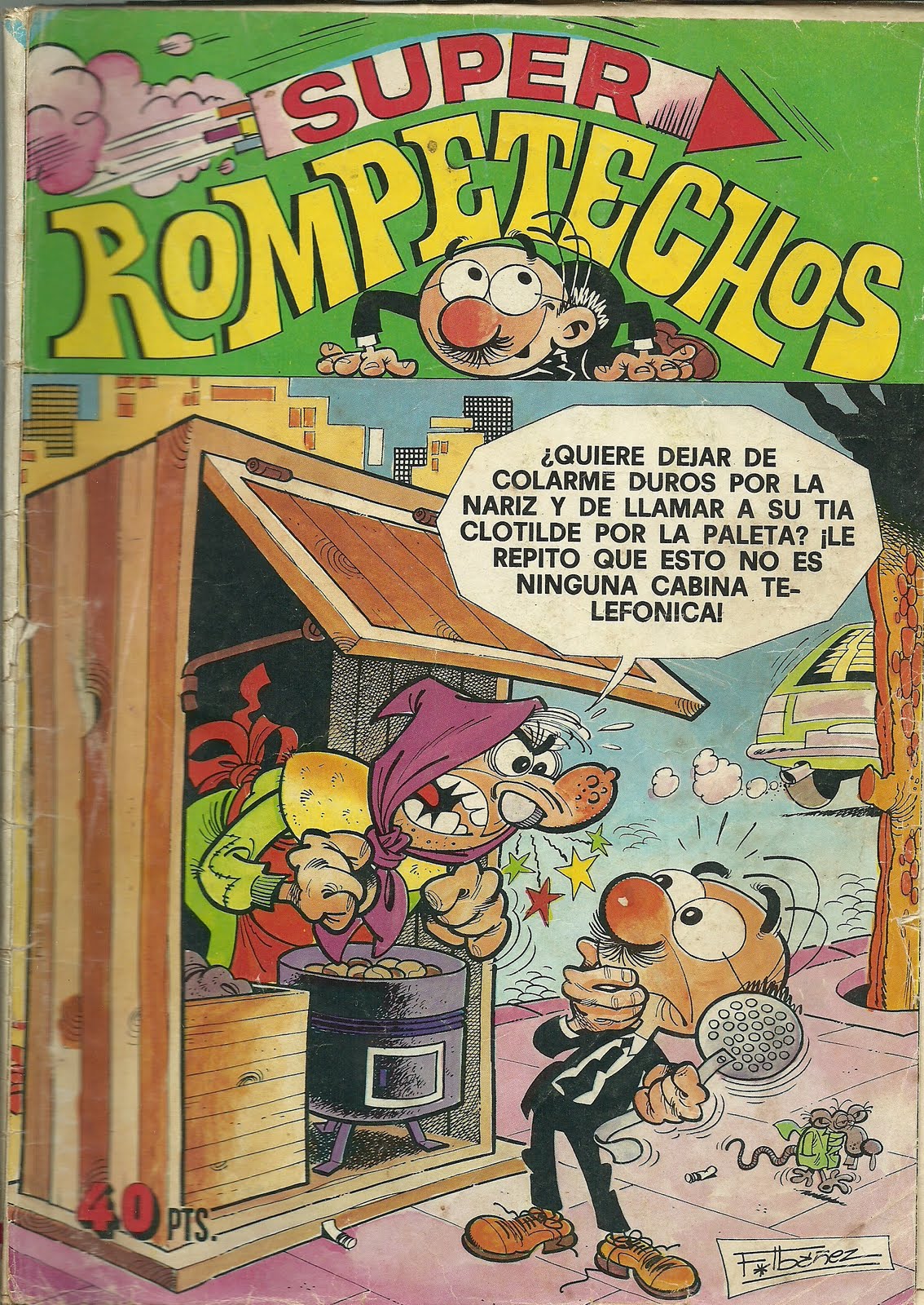 Otro de los grandes clásicos de Ibáñez para Bruguera y Tiovivo, se trata además de su personaje favorito. Creado en 1964, Rompetechos provoca con su ceguera -que él jamás reconoce- todo tipo de catástrofes. Un abono para la concepción del gag salvaje y constante del autor, que crea de nuevo un personaje absolutamente inadaptado a su entorno. Se señala que está inspirado en la película alemana Quax, el piloto Rompetechos.