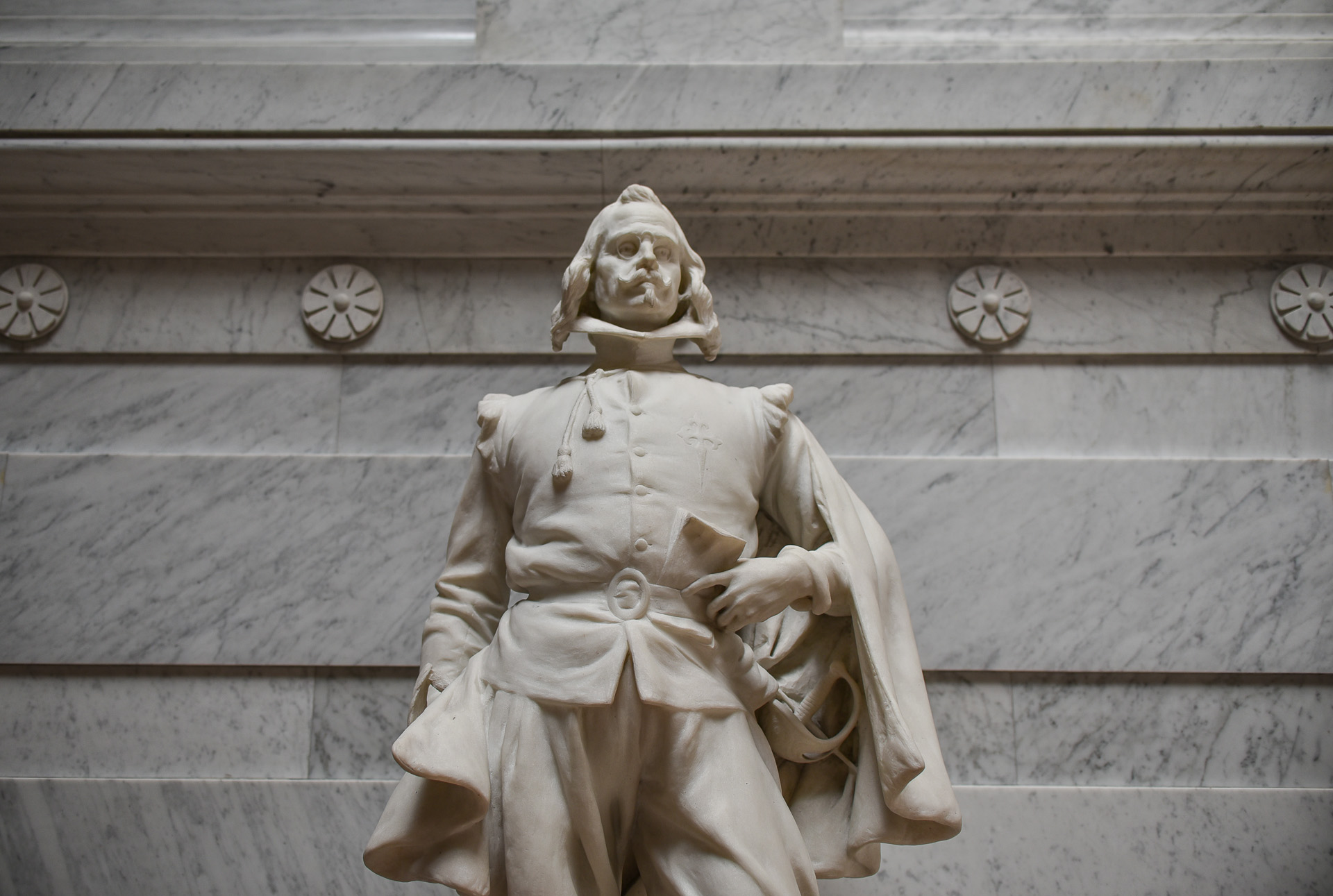 En el descansillo de las escaleras de la RAE se puede ver la estatua de Francisco de Quevedo.