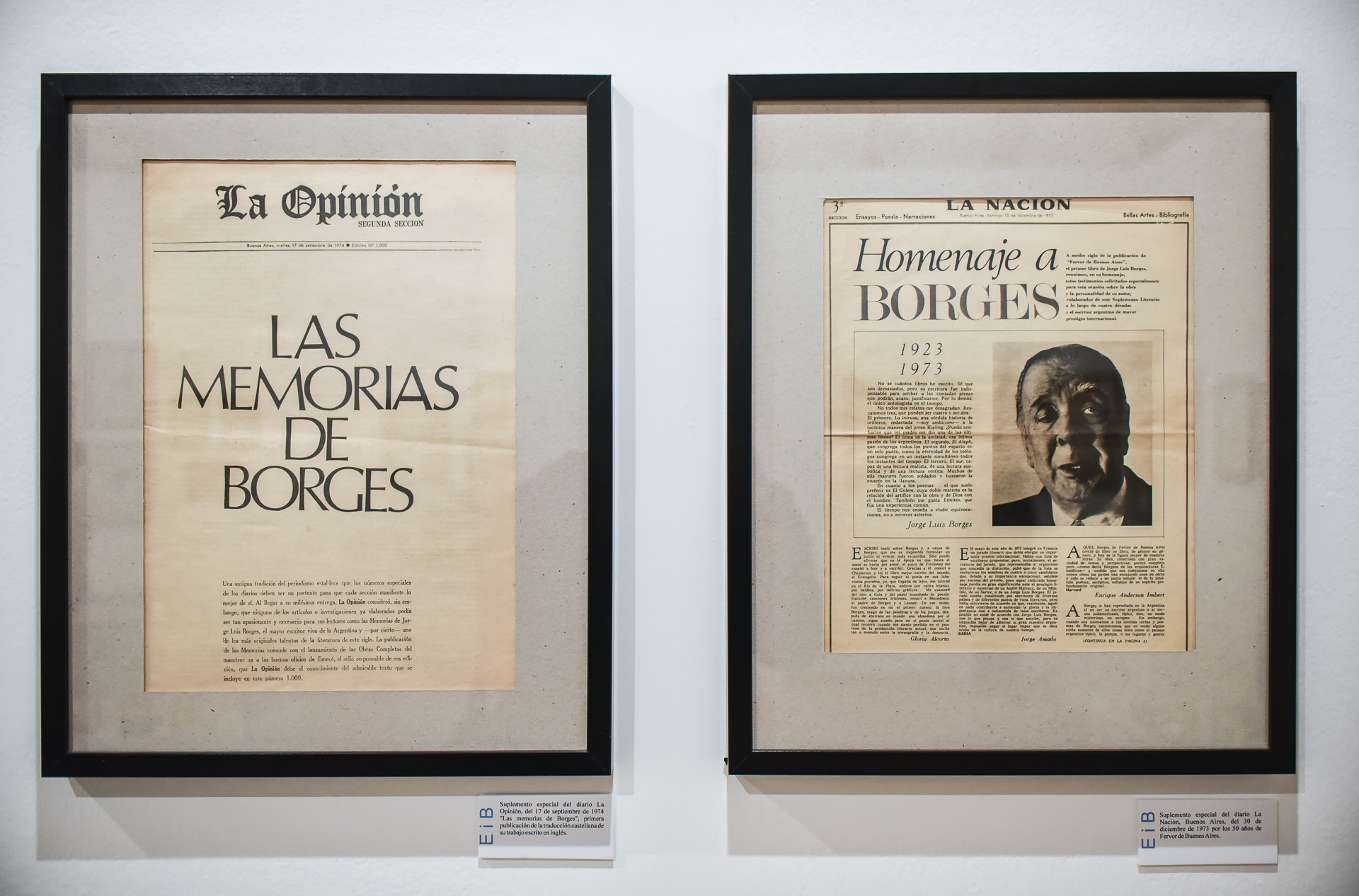 Se trata de una exposición, con material seleccionado dentro de la colección del Museo del Escritor, que recorre toda la vida de Jorge Luis Borges y su producción literaria. La muestra estará abierta al público del 22 de abril al 21 de mayo de 2016, en la Sala Frida Khalo de la Casa de América en Madrid.