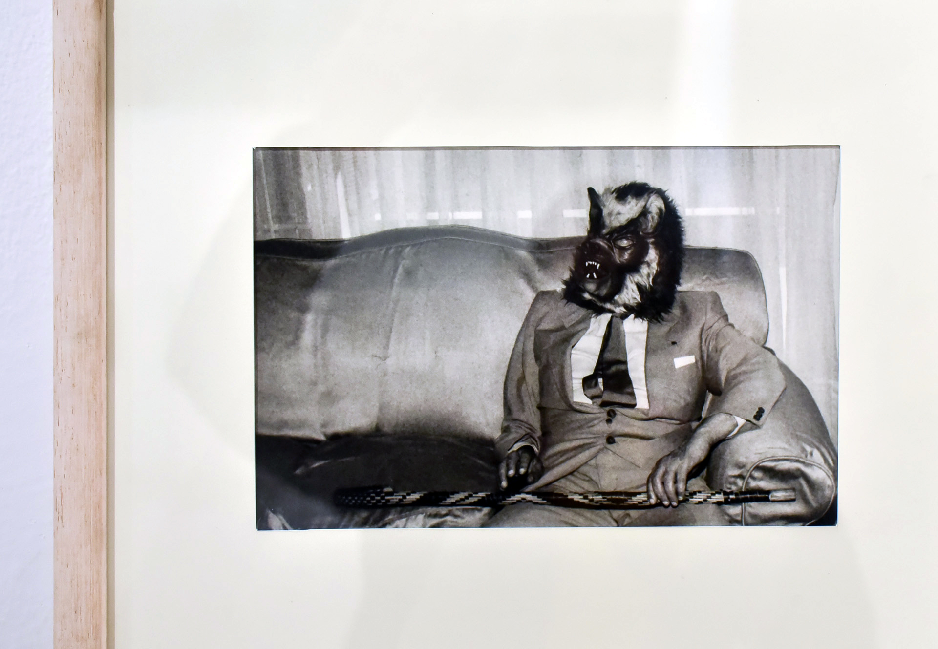 Borges con máscara de lobo en su casa de Buenos Aires en 1983.