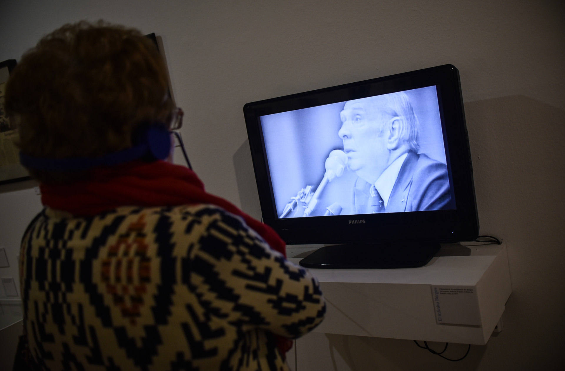 Una mujer escucha una de las charlas que dio Borges al final de su vida.