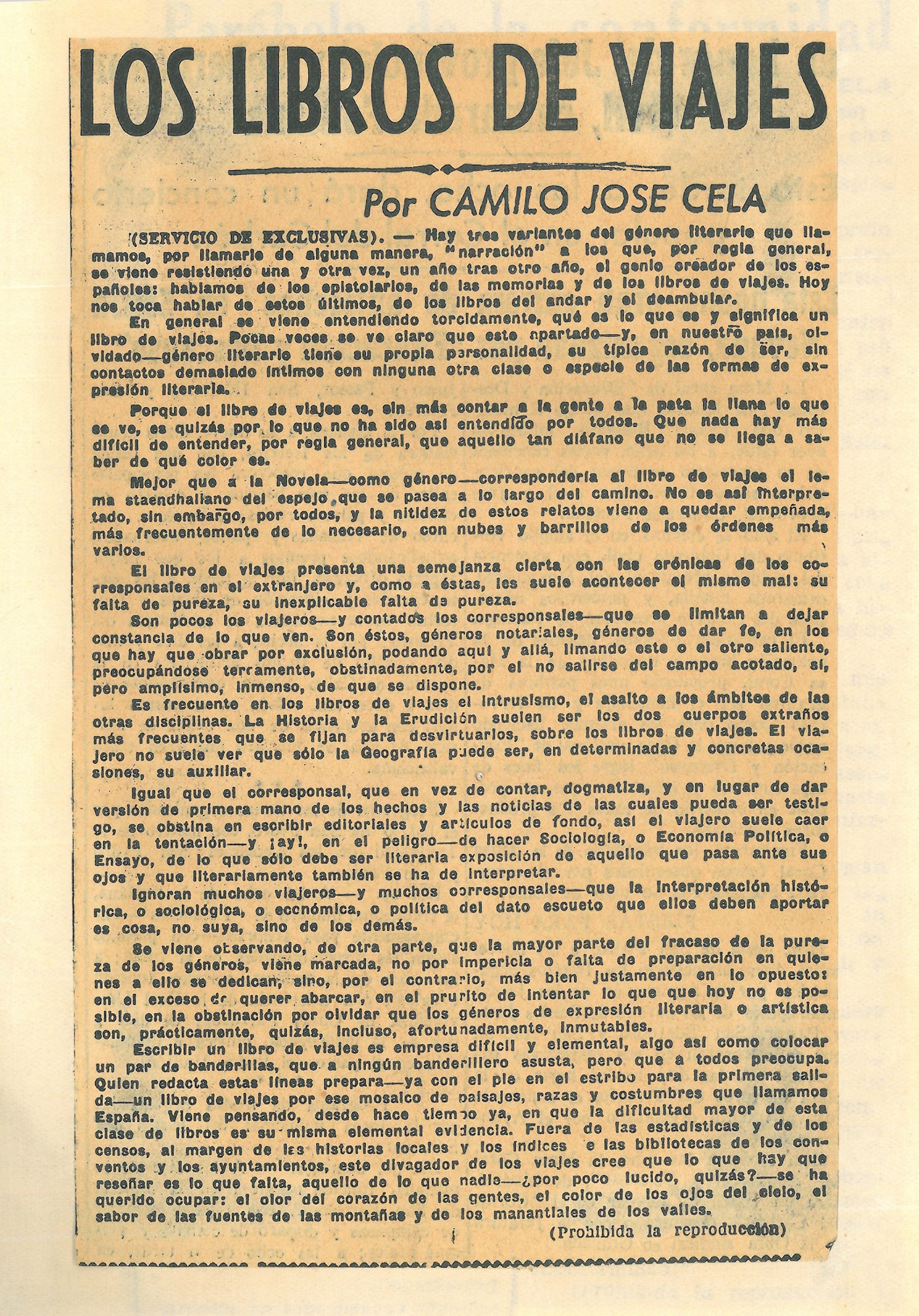 La Biblioteca Nacional de España acoge la exposición "CJC 2016. El centenario de un Nobel. Un libro y toda la soledad" que, a través de más de 600 piezas, entre libros, pinturas, manuscritos u objeto, hace un recorrido veraz y atractivo por todos los perfiles del escritor: novelista, narrador, articulista, vagabundo, memorialista, dramaturgo, lexicógrafo y poeta. La muestra sugiere un viaje por las fortunas y las adversidades del autor, destacando al narrador, a la par que muestra la importancia de sus novelas y manifiesta su relación con la cultura y la sociedad de cada momento histórico.