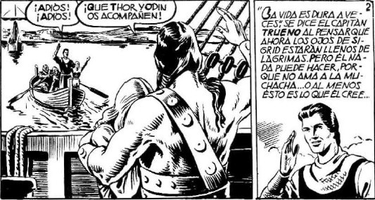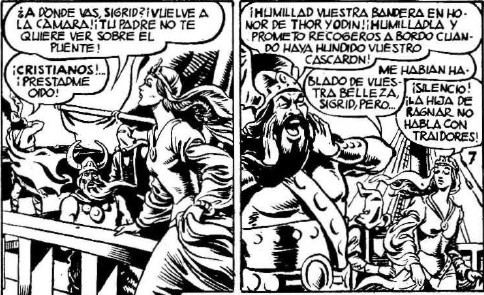 En cualquier caso, es indudable que una de las mujeres más llamativas para quienes nacimos pocos años antes o después de la primera edición de El Capitán Trueno y tuvimos la fortuna de poder leerlo, se llamaba Sigrid. Era vikinga, modelo desafiante de la mujer independiente y activa y fue, para muchos, reina de Thule. Quién sabe si para algunos llegó a ser reina de su corazón. Gracias, Mora y Ambrós, por tan extraordinario regalo que nos ayudó a leer y nos metió un mundo entero en la cabeza y en la sangre contado en español y empapado de los valores de la caballerosidad y la defensa de los humildes.