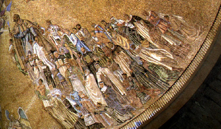 La cripta del Valle de los Caídos impresiona por el clima tenebroso y ominoso que allí se respira, flanqueado el paseo del visitante por las estatuas monumentales de Juan de Ávalos y las tumbas del dictador y del profeta de "España, unidad de destino en la universal". Pero si el corazón se encoge es cuando se alza la vista a la cúpula de la capilla y se aprecia la figura de Unamuno en un mosaico junto a la "santos mártires españoles" o "civiles sacrificados".