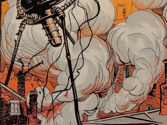 De la obra de Wells, publicada en 1897, se dice siempre lo mismo: que es una denuncia del imperialismo, pero en realidad hay mucho más. Veinte años antes, el militar británico retirado George T. Chesney había publicado por entregas La Batalla de Dorking en la Blackwood Magazine. El éxito en toda Europa fue tremendo, y puso de moda la literatura especulativa sobre guerras futuras. Chesney planteaba qué pasaría en Gran Bretaña si fuera invadida por un enemigo casi invencible, y cómo reaccionaría la gente. Una cuestión tan atractiva y lucrativa enganchó a muchos escritores. En esta tesitura, Frank Wells planteó a su hermano, nuestro Herbert Georges, qué ocurriría si la comarca de Surrey, al sureste de Inglaterra, fuera tomada por extraterrestres.