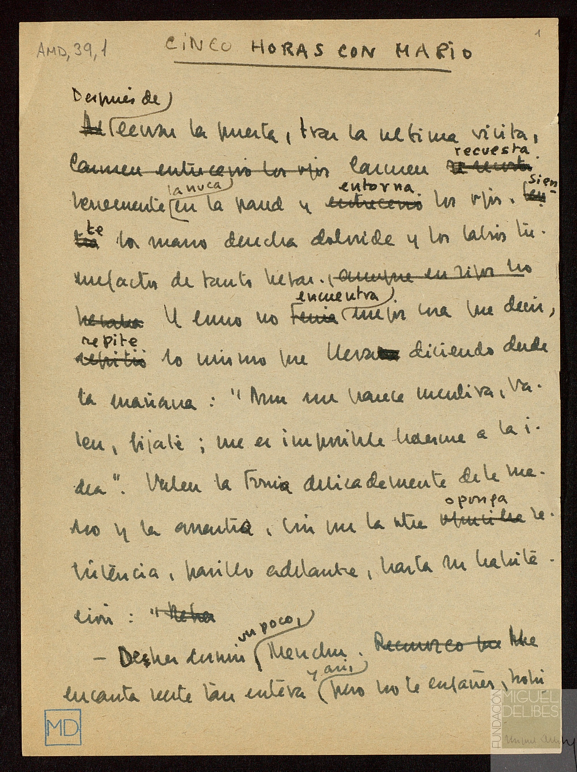 "En Cinco horas con Mario el lector parece que oye directamente hablar al personaje", asegura Amparo Medina-Bocos, comisaria de la exposición. "Carmen, representante de la burguesía media provinciana, estaba de acuerdo con las ideas políticas que dominaban entonces en España. Repite lo que le han inculcado sus padres monárquicos, dice las cosas que gran parte del régimen del momento mantenía. Delibes fue hábil porque le hizo decir todo esto a ella y no a Mario", añade.