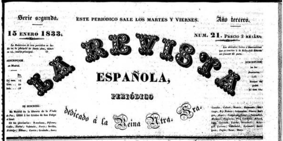 Artículo publicado en La Revista Española, Periódico Dedicado a la Reina Ntra. Sra., n.º 51, 30 de abril de 1833, Madrid. Firmado: Fígaro