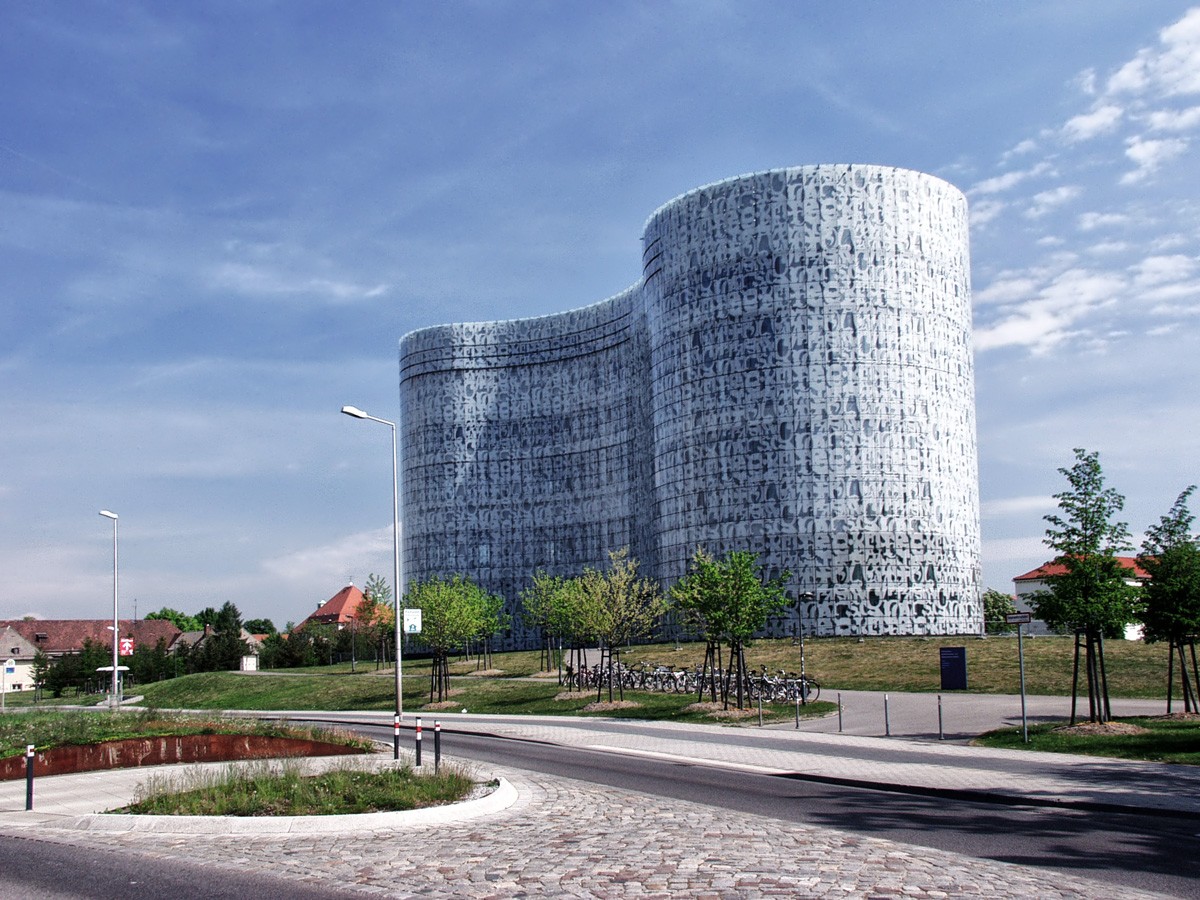 La IKMZ es una de las bibliotecas más recientes construidas en Alemania. Su curioso diseño está inspirado en la silueta de una gigantesca ameba que parece fluir entre los edificios que lo rodean. Los encargados del diseño fueron Herzog & de Meuron, arquitectos de renombre que han recibido diversos premios.