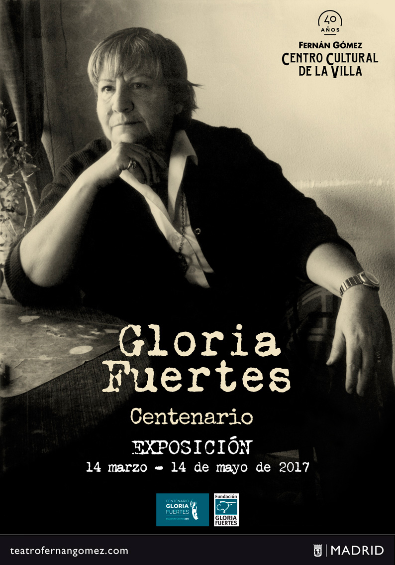 El 28 de julio de 2017 se cumple el primer centenario del nacimiento de la poeta madrileña Gloria Fuertes. El Fernán Gómez Centro Cultural de la Villa fue una de las instituciones que quiso rendirle un homenaje con una exposición en la que hace un recorrido artístico y vital. El objetivo es dar a conocer su vida y reivindicar el lugar que le corresponde en el panorama literario español del siglo XX.