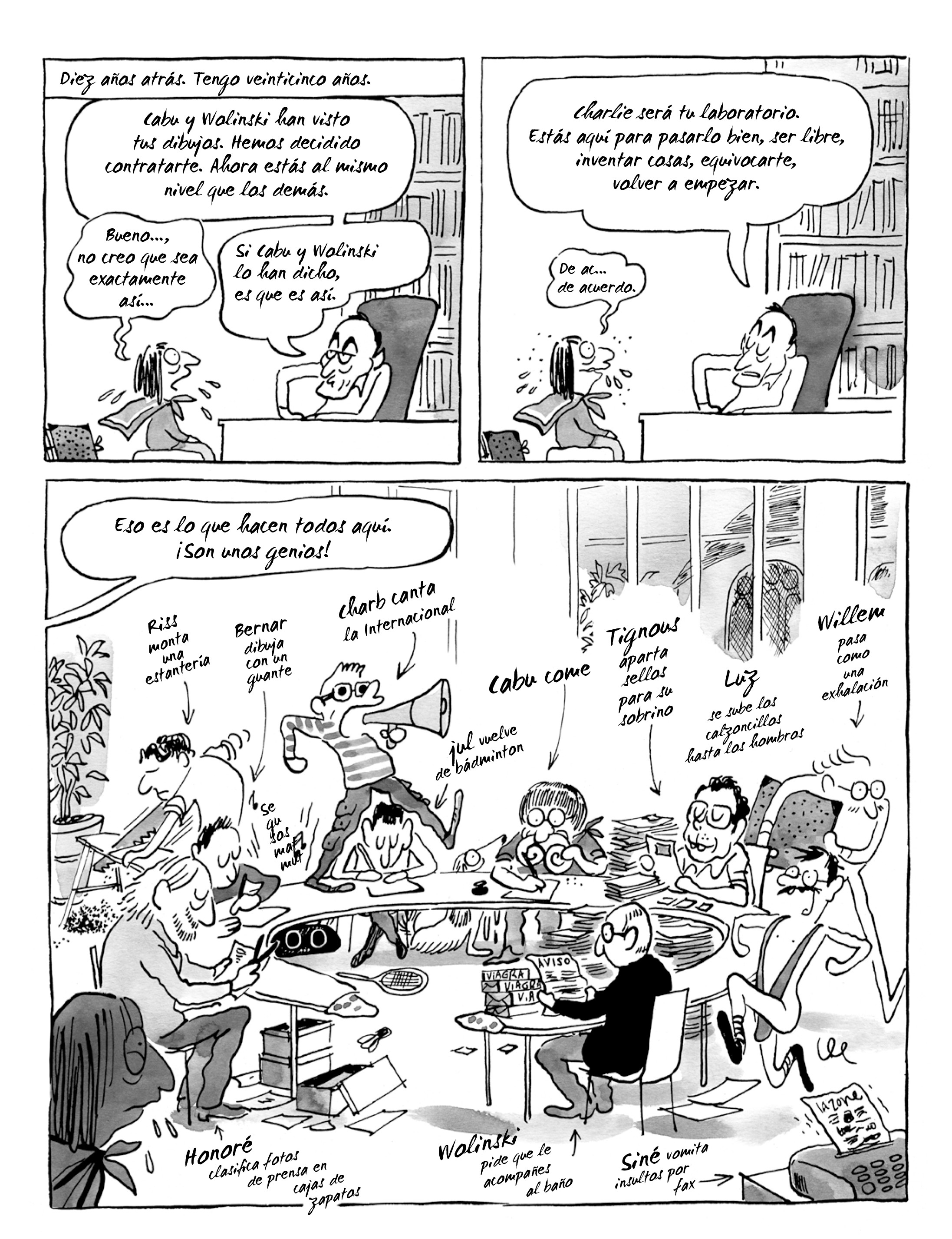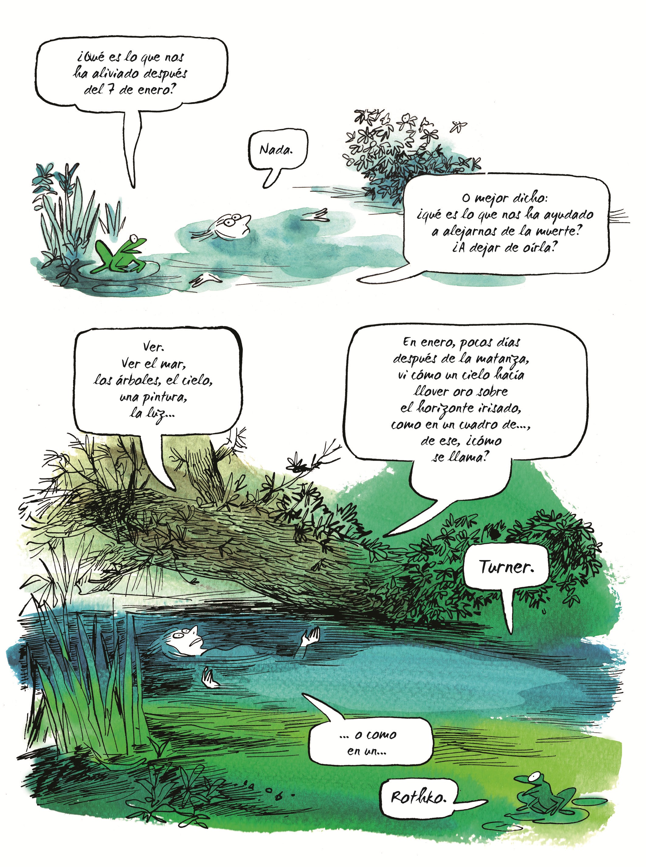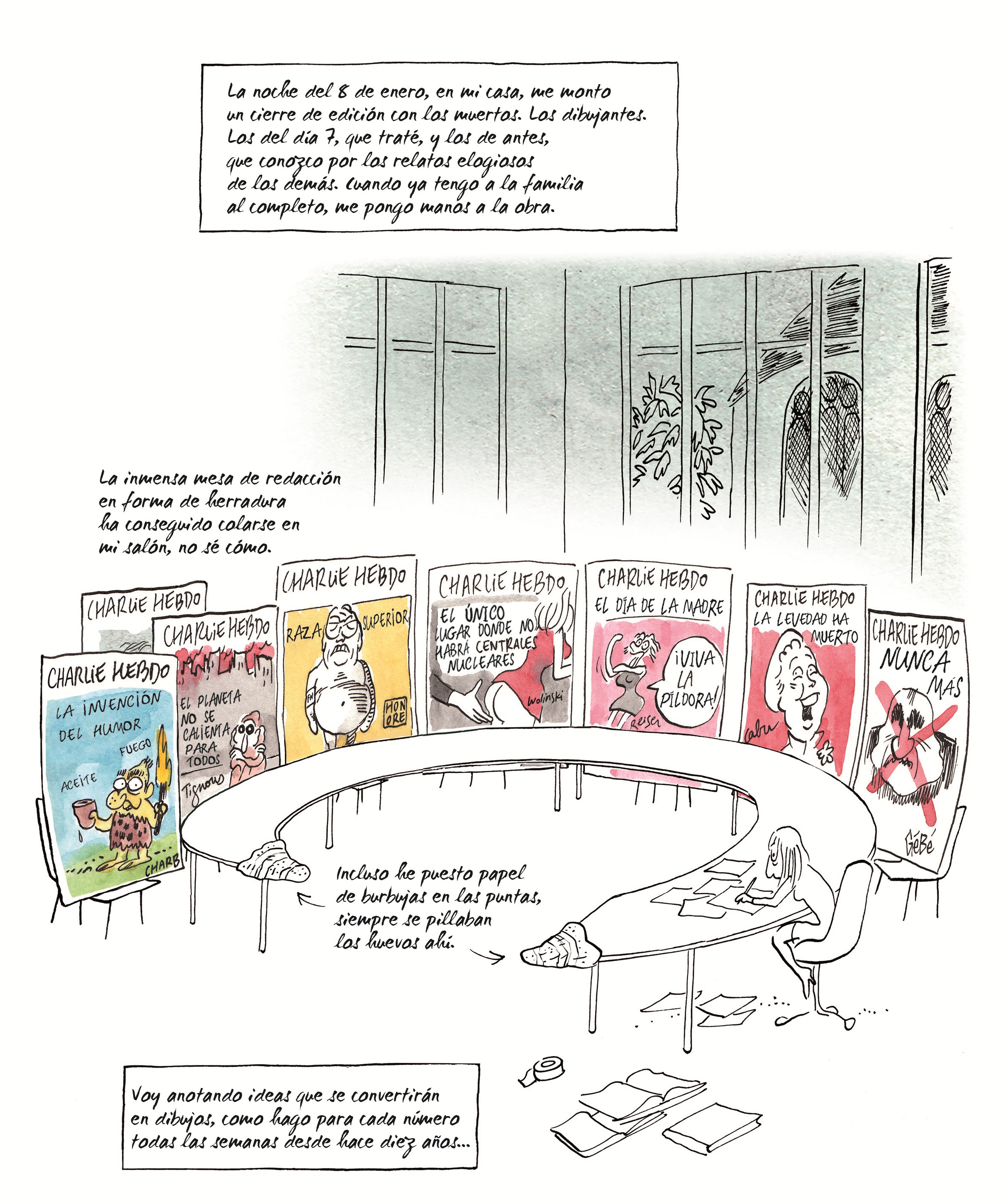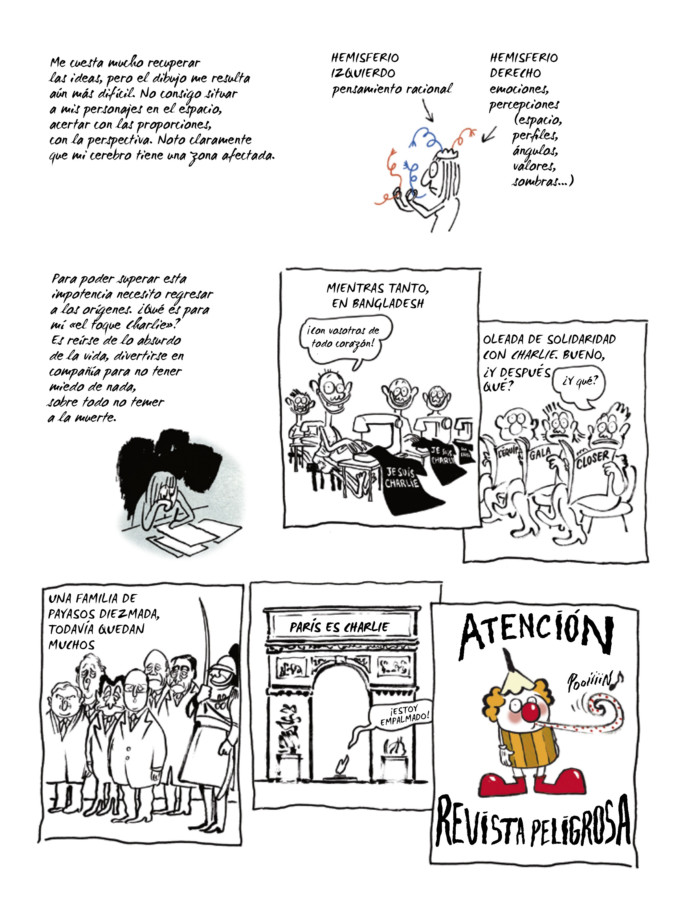 La levedad es un cómic en el que nos describe cómo retomó su carrera de dibujante tras el atentado de Charlie Hebdo.