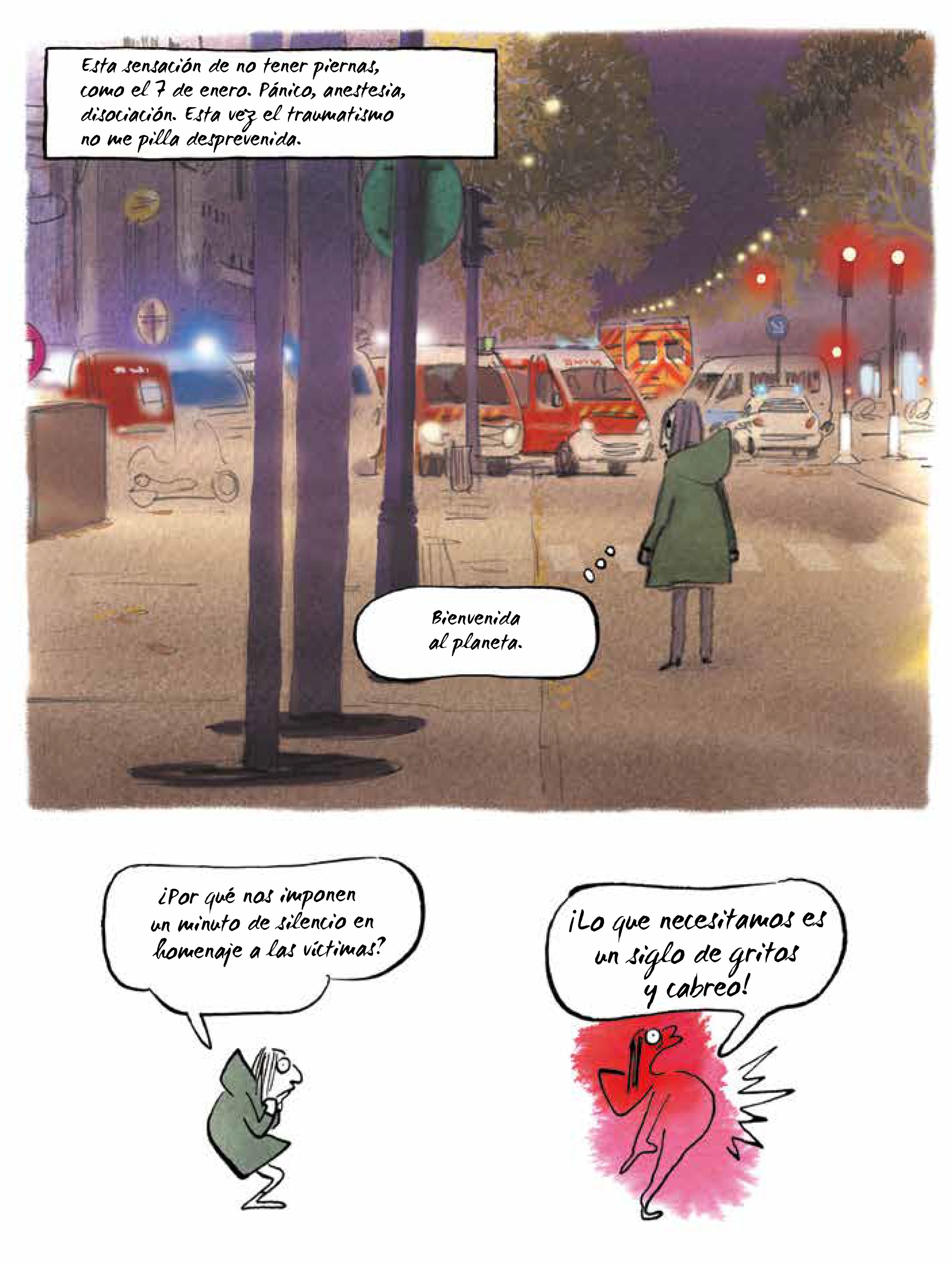El día 7 de enero de 2015, la alarma del despertador de la dibujante Catherine Meurisse no sonó, haciendo que llegara tarde a la reunión del equipo de diseñadores de la revista Charlie Hebdo. Este descuido le salvó la vida, pero no la libró, como al resto de los supervivientes del fatídico atentado contra la sede de la publicación, de afrontar la violencia de un terrible suceso que la dejó sin amigos, maestros, mentores y, de paso, sin inocencia. Ha contado su historia en La levedad (Impedimenta), el testimonio en primera persona del horror que sufrió Charlie Hebdo y de cómo el arte puede sanar todas las tragedias.