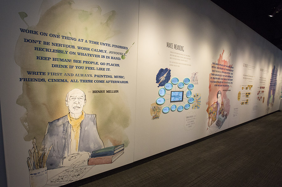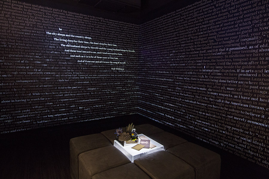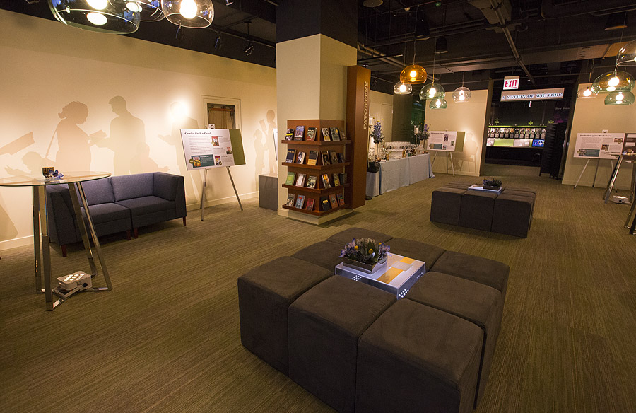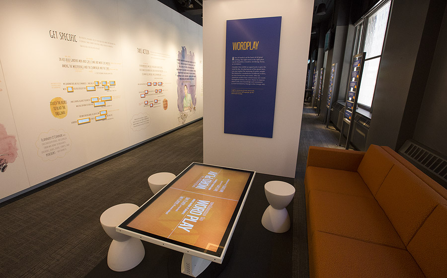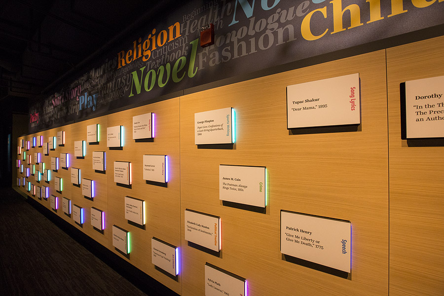 Este pasillo exhibe una serie de carteles luminosos con citas de grandes escritos americanos. Los visitantes pueden deslizar levantarla y descubrir curiosidades sobre la obra o su autor, incluyendo música, vídeos o fotos.