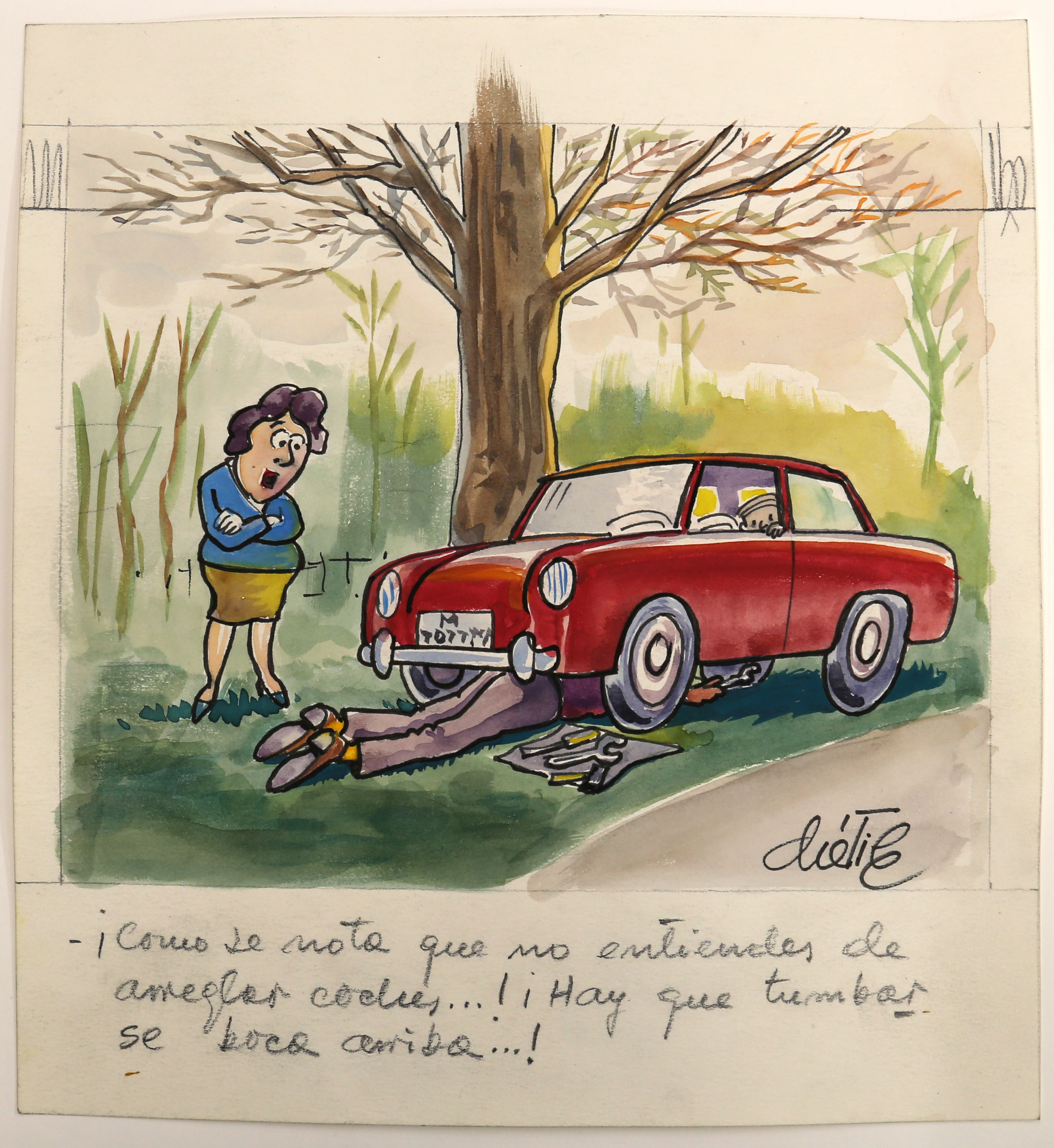 "Me gustaba dibujar; mejor dicho, tenía necesidad de hacerlo, pero nunca me han interesado mis propios dibujos […] Hacia el cincuenta y cinco, casado, cuatro hijos… cierta necesidad de pluriempleo para redondear el presupuesto… Esas fueron las circunstancias", aseguró.