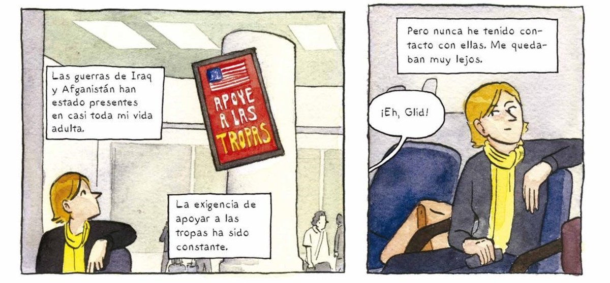 Curiosa mezcla la de los dos reporteros, el veterano de la guerra de Iraq y la ilustradora norteamericana. Más aún cuando se exponen puntos de vista desconcertantes: como que el exmarine no condene la invasión de Iraq y no se arrepienta de nada:
