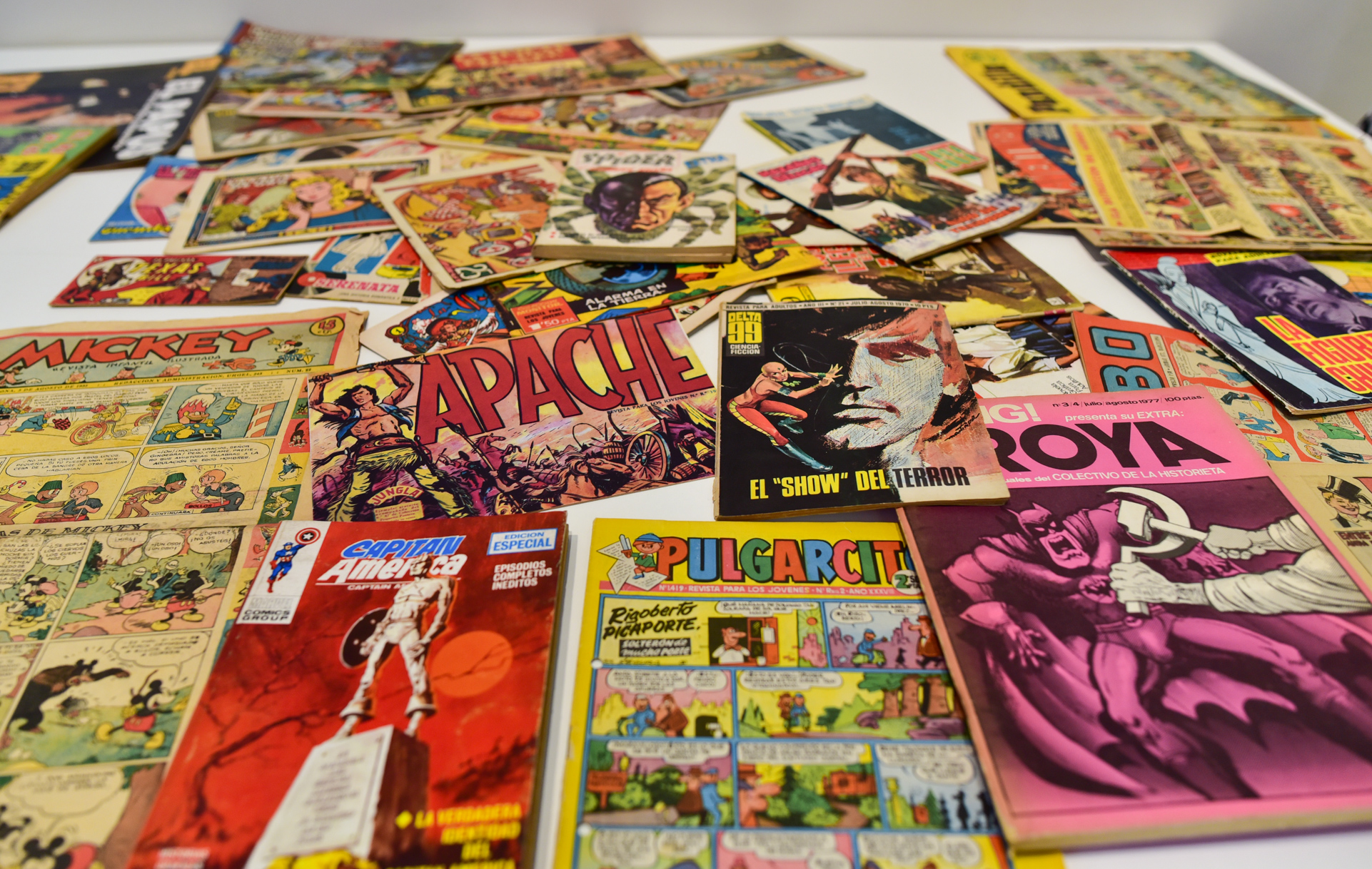"La edad de oro del tebeo corresponde a los años 40, 50 y 60", explica Guiral. "Es la etapa en las que más títulos se editan, algunos con tiradas de cientos de miles de ejemplares, y más empleos genera", añade.