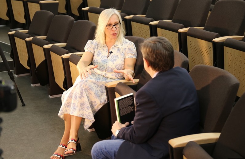 La entrevista fue grabada en el salón de actos de la Universidad San Pablo CEU.